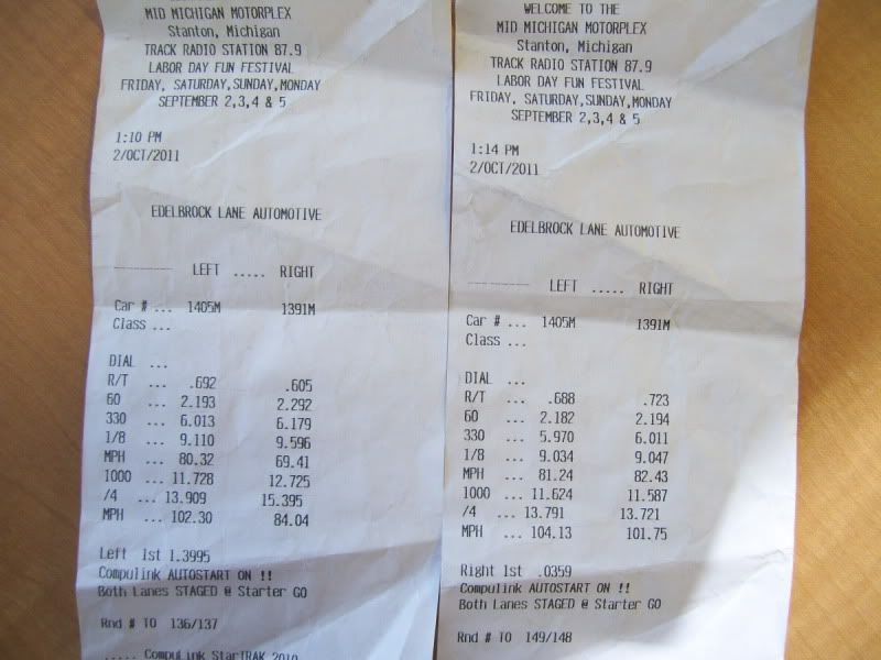 "This is not a thread for extra conversation. This thread is for posting of 1/4 mile times and time slips ONLY!! All other posts will be deleted so please follow the format. There is a 1/4 mile discussion thread if you want to bench race."
