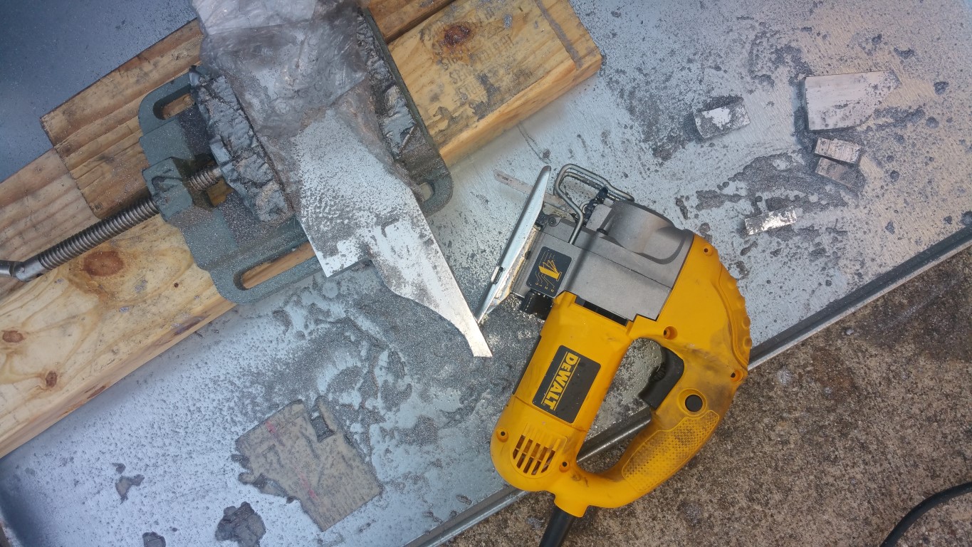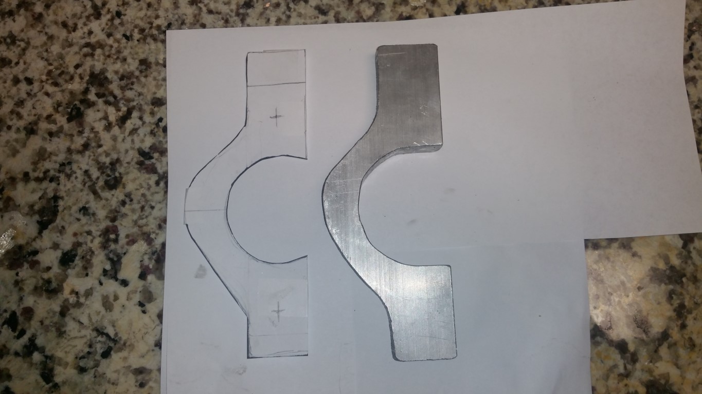Started on the vacuum pump bracket (using the 1/2" 6061 aluminum -- 3" wide by 24" long). Created my template, drew it on the 6061, and began cutting using my jig saw and the blades that I used for the hex vents -- SLOW, steady, and used lots of WD40: