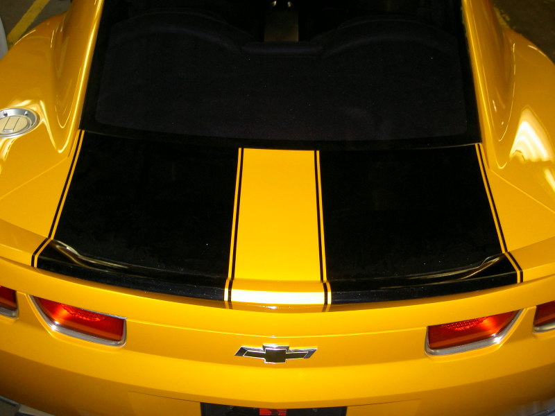 I think the stripes look good, but I prefer the black out between the tail lights that is on the LS7 Camaro at Sema to the Tom Henery version.