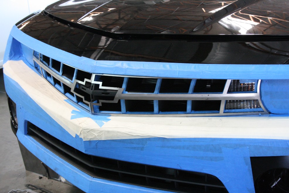 Here are some new pictures with both of the concept grills inserted (upper and lower portions). I also included pictures of the Chevy Bowtie's that will be on the car as well as will be offered for sale by Defenderworx (for any information on purchasing these items contact Dave Hiller through Scott Volkert - CamaroScotty- at dhiller@north2newman.com). The pictures i have are of the black powder coated Bowtie's but they will be available in chrome as well. We are not sure yet whether the black or the chrome one will go on our SEMA car so please bear with us for the time being!