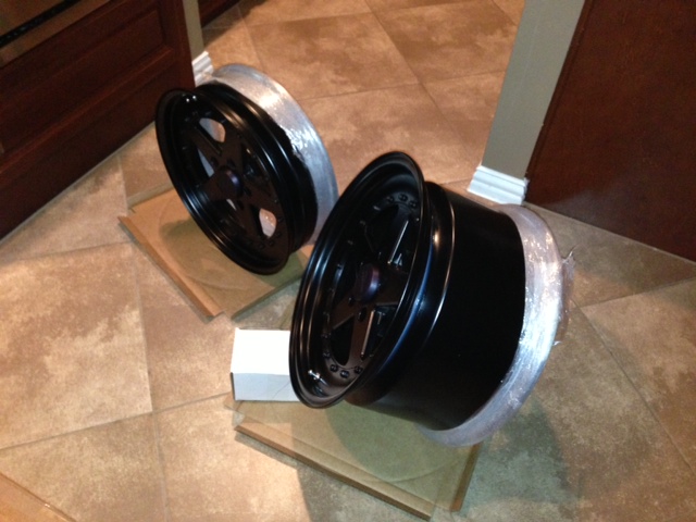 . I don't think the RX chiller can handle my heat, they are supposed to send me a larger chiller unit next week (we'll see). Right not my coolant is around 75-80*, but my IATs still run around 150 (down from about 165). Somewhere along the line, but car has started to eat my 10 rib belts. It was either after I install my water pump from Whipple and my 2.75" pulley. Ripped 1 in half a few weeks back and did some damage to my hood liner. I rerouted the belt slightly and when I checked today, I noticed I was running a 9 rib belt (pretty sure it had 10 ribs when I installed it) .I did resolve my KR on quick shifts. I had to slow down the throttle opening rate from 100% down to 2%...hmm...but it seems to do the trick...no more knocking. My bogarts are all mounted and ready to go...I installed a tire rack in the garage today for storage (sorry for bad pic). Only things I have left are