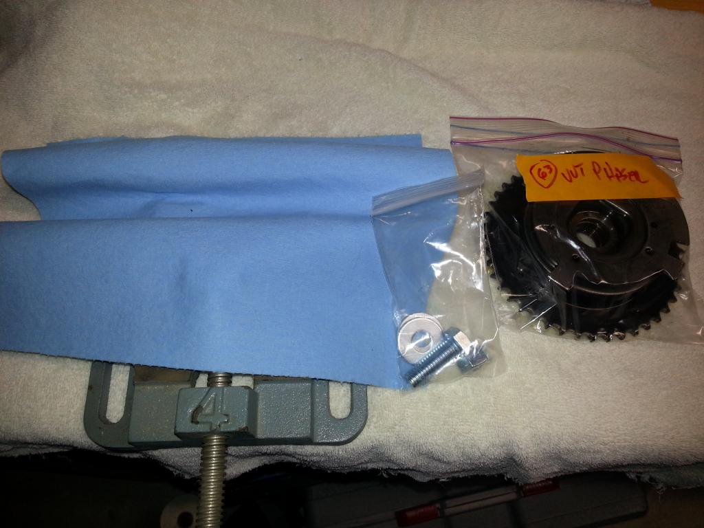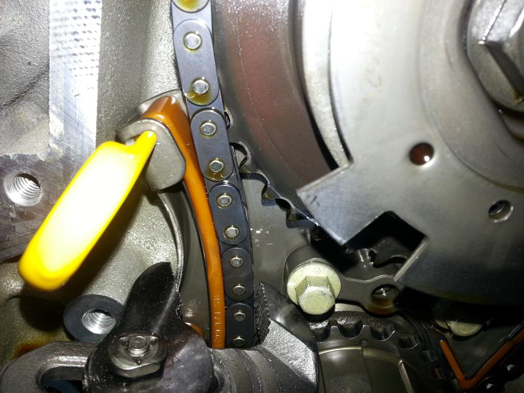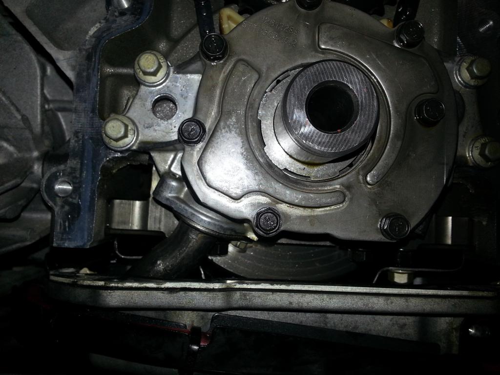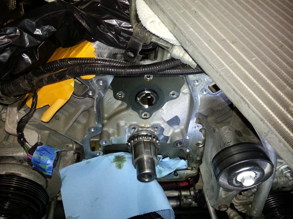 Now, I covered up the oil pump pickup tube so I could remove the tensioner and VVT Cam Gear (be careful when remove the cam gear, you grab it from 'behind the gear and NOT the VVT phaser)