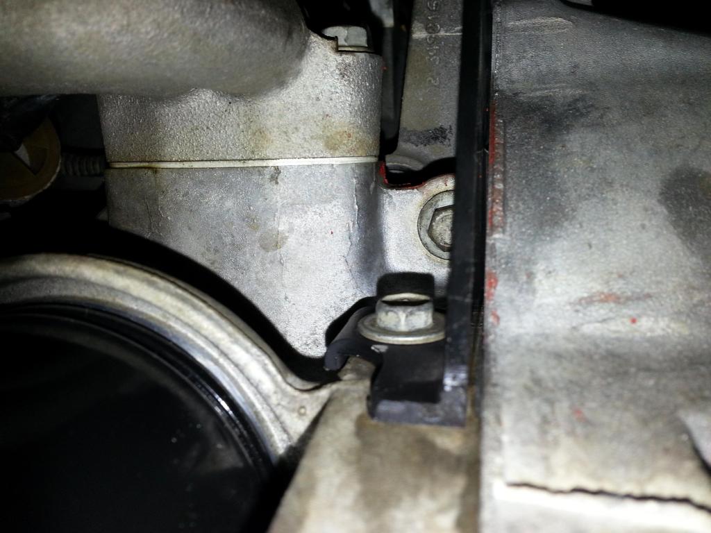 This actually went very smoothly -- I was surprised @ how easy the pan dropped. I remove the 2 bolts that went in from the transmission (this is an auto), the 2 long bolts in the back of the oil pan: ![]() and then remove all but 1 oil pan bolt. I also removed the 2 nuts and 1 bolt that held on the battery cable tray and ac lines that wrap around the pan: ![]() ![]() ![]() There is also a bolt on the drivers side front that holds the battery cable tray on (its on the pan) I just loosened it up a small amount so it would ease the pan drop. Once those are loosened and removed, you can remove the 2 front oil pan bolts that were in the timing chain cover (see above). Next I removed the flywheel cover on the driver's side (1 10mm bolt): ![]() Removed all the bolts and tapped the pan. I then went from the front and gently tugged the front of the pan and pop! ![]() BTW, keep a drain pan under the 'back' of the oil pan -- to catch the run off! Now, to get the oil pump pickup tube bolt off, I place a plastic handle (flash light) on the passenger's side of the pan/block to hold it down so I could get the oil pump bolt off: ![]() ![]() Getting ready to remove the pump pickup tube bolt: ![]() Unbolted using a 10 mm ratchet wrench and these babies: ![]() ![]() Those assisted in unscrewing the bolt AND allow me to hold it @ the same time. I had enough room for my fingers and this to unscrew the bolt (these are hemostat clamps or from Bass Pro pliers in the fishing section). Now unbolting the oil pump: ![]() Now, to remove the pump, I used a screw driver and gently pull down on the oil pump pickup tube and at the same time, pull the oil pump forward while rotating clockwise towards me -- came right out with no issues @ all: ![]() ![]() That step was detailed here: http://www.ls1howto.com/index.php?article=23 Look for: 'Optional: If you purchased a new oil pump and/or a new chain, you'll need to complete this step.' Last edited by hammdo; 07-02-2017 at 03:11 PM. |