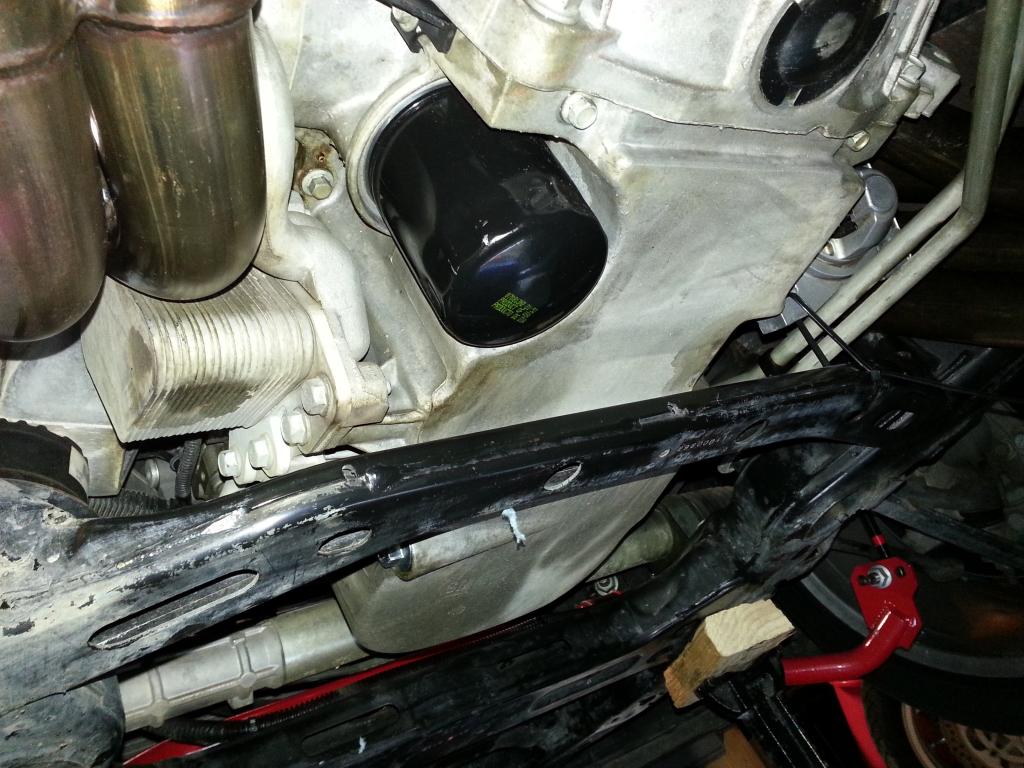 OK, installed the oil pan! Getting silicone on the back rear is not easy. You'll need to clean the rear edge (I used brake kleen and sprayed the length of it, then apply the silicone the best way you can -- try and get the length of the back and corners -- do be careful around the oil cooler ports).