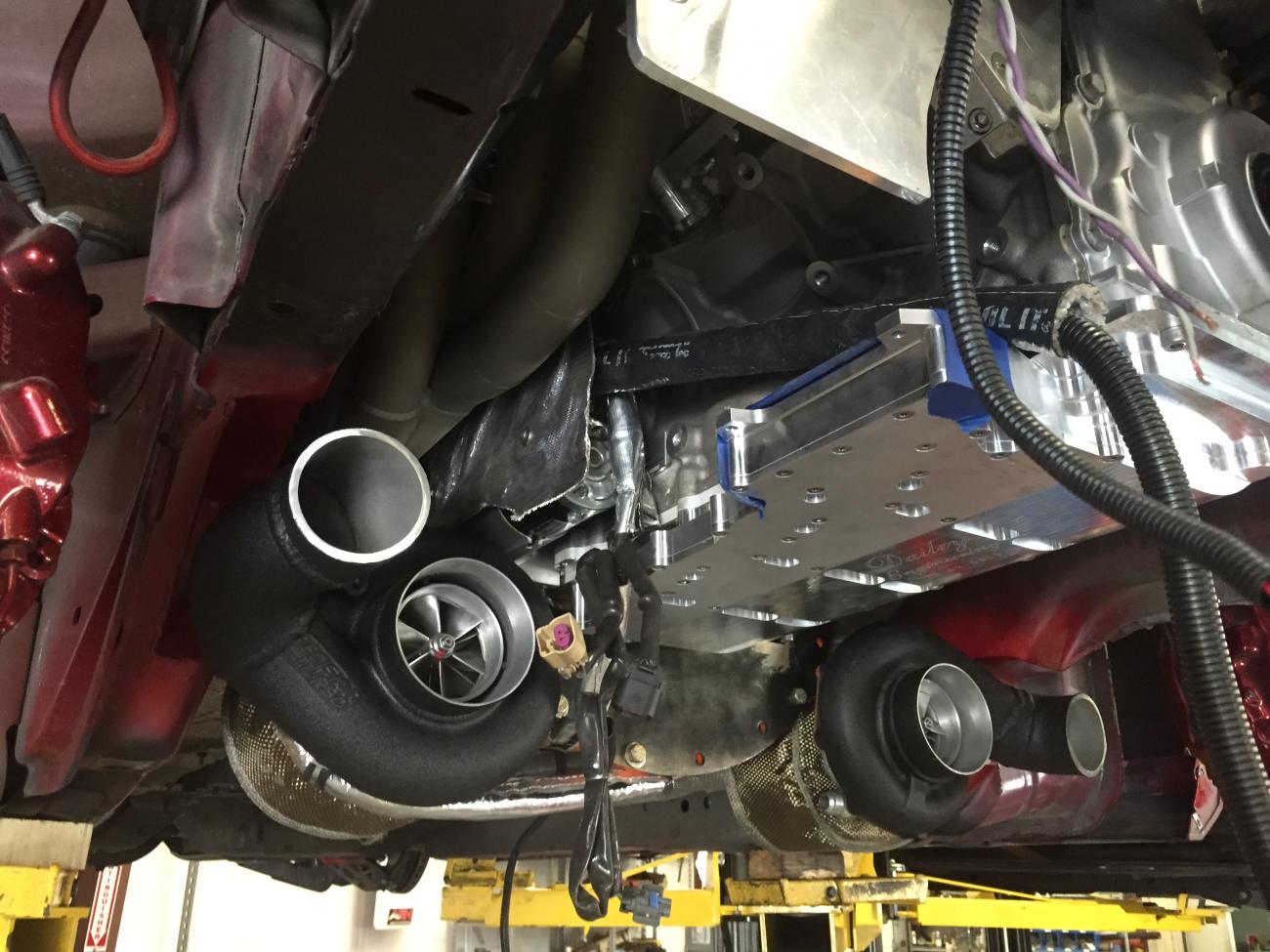 Actually, it's a custom built ERL 417 cubic inch LS motor, with AllPro LSW12-4 heads, solid roller cam, Jesel valve train, Dailey dry sump, Callies Dragon Slayer big block crank, Ultra billet rods, Ross racing pistons, 10.5 /1 compression ratio, homemade (shop) turbo manifolds, homemade (shop) intercooler, homemade (shop) intake manifold, 225 lb/hr Siemens Deka racing injectors, 3.5 inch exhaust with magnaflow mufflers...etc... Twin 76/75 Precision turbos with CEA wheels... We can run up to 35 lbs of boost for short periods and 28-30 for substantially longer periods.