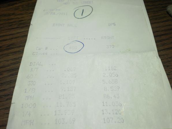 You should post this in the "official" 1/4 mile thread with a list of your mods. http://www.camaro5.com/forums/showthread.php?t=21013. Then I can put your time in the correct category (bolt ons, Internal mods, etc) if it makes the top 30 in that category.