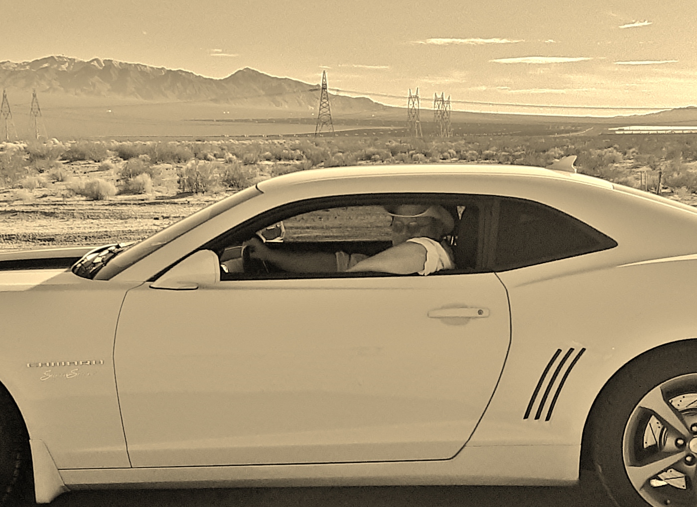 Out in the desert at our favorite, lonely stretch of road.