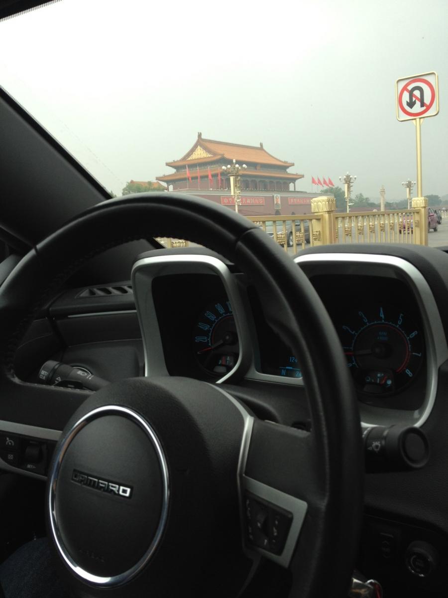 I drove past the Forbidden City and Tiananmen square. Its hard to get a good shot in traffic. This was the only chance I had to take a picture (at a red light).