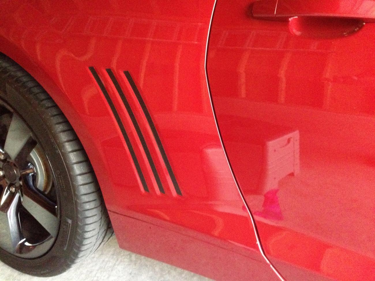 Installed a set of the grossly expensive SLP flat black fades to the quarter gills on my wife's ride. I'll take a shot in the daylight tomorrow as it sits in the garage now and garage pics don't come out too well.
