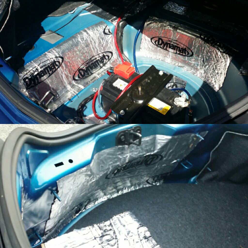 Over the weekend I slowly applied dynamat to my whole trunk, also some on the license plates and frame. I probably covered 90% of the trunk in the end using up all my dynamat.