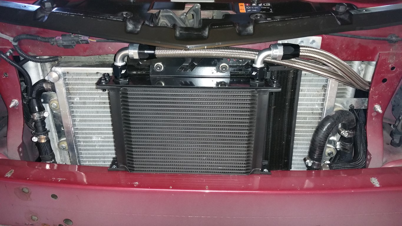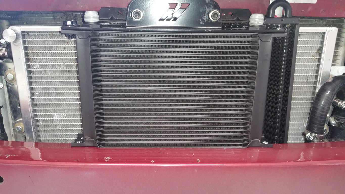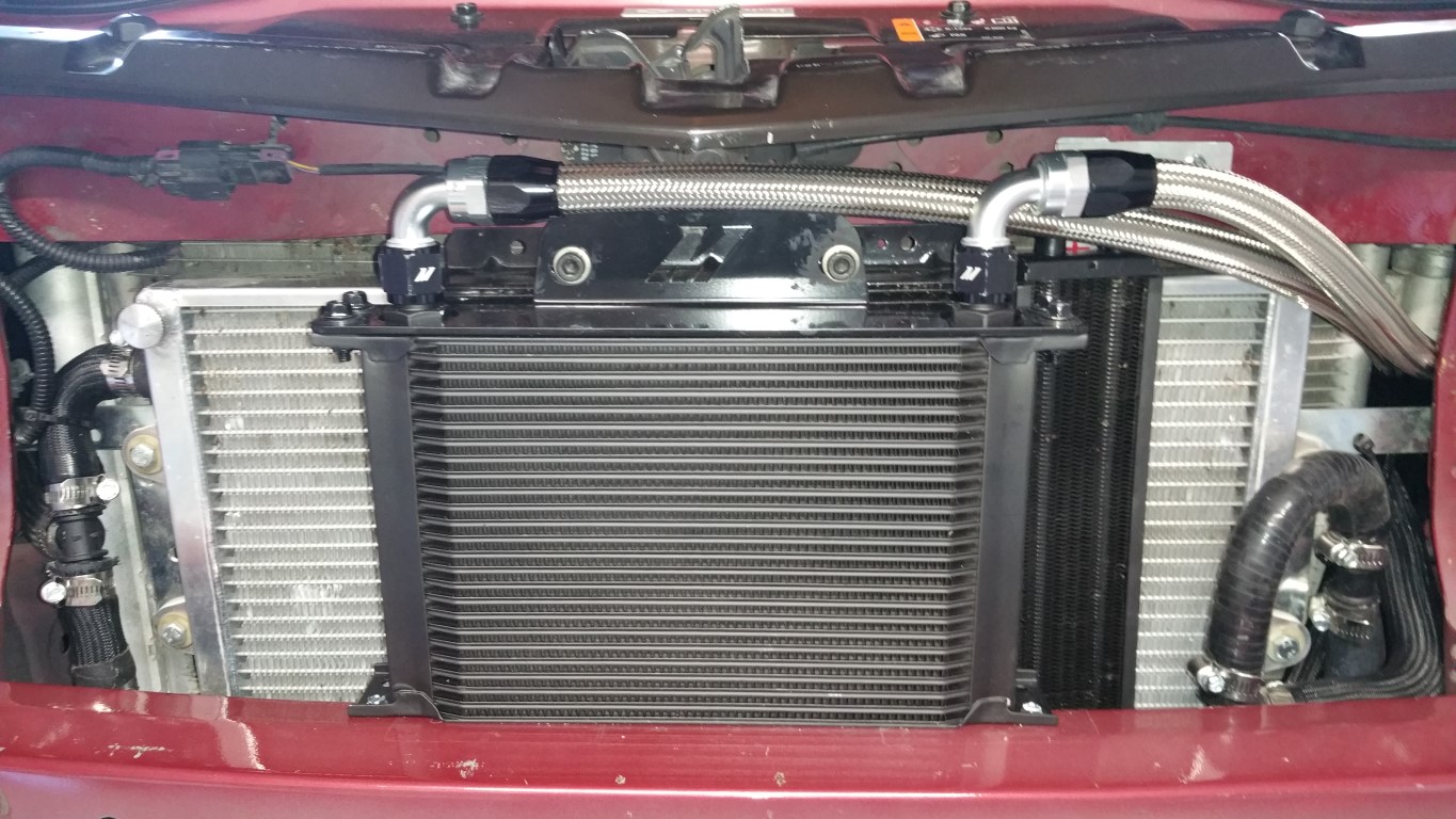 The Mishimoto oil cooler is very clean! Looks so much better than my B&M oil cooler haha