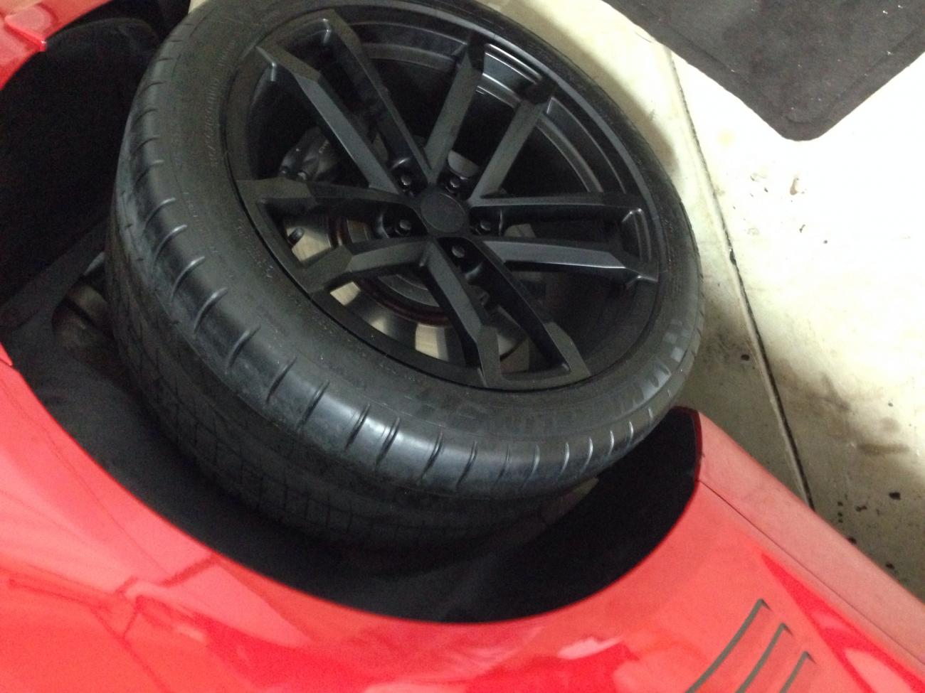 You have to look close in this pic. But you can see how I trimmed the wheel well. It only had to be done on the side of the wheel where the the backing plate was. You can't see it with the wheel on and the car on the ground.