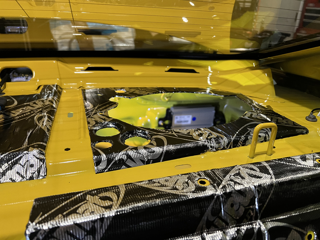 I finished the trunk floor and battery well and I may just stop at this point…at least until I can get out on a road test. I have 4 full/uncut sheets out of the 9 remaining, so based on my rough calculations I added almost 11 lbs of extra weight.