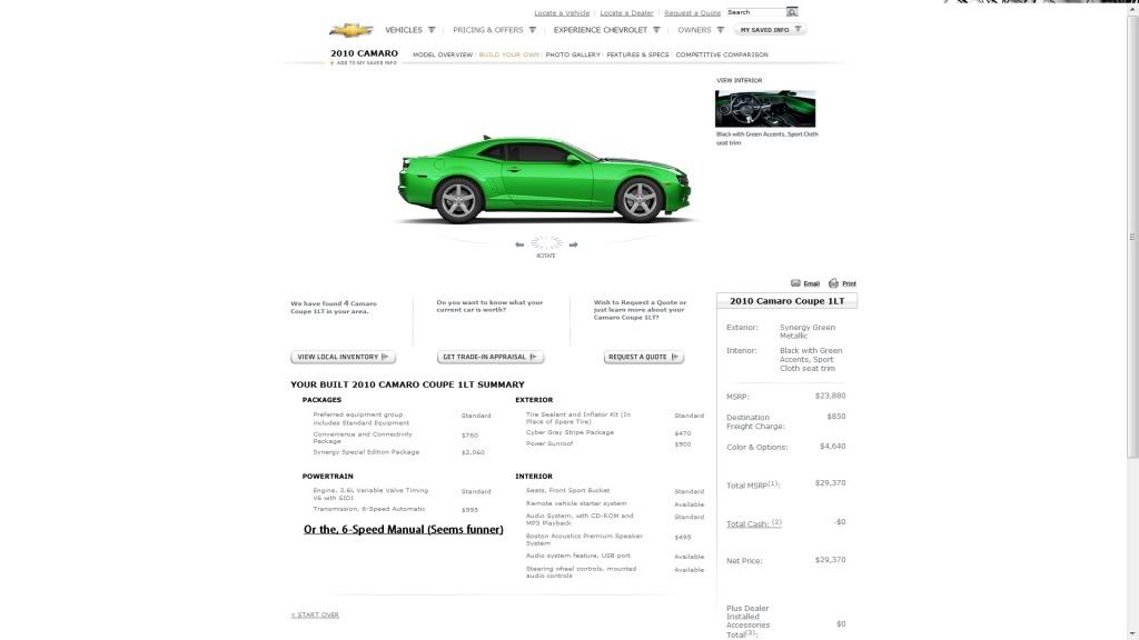 I had my mind set on a Synergy Green Special Edition. ![]() So, If I can get one of the 2 before they're gone, than that's what I'm getting, If not, I'm gonna have to get a 2011, which I'm probably looking at $31,370 instead of $29,370. So, wish me luck on the cheaper one, if not, I GUESS I can live with a HUD ![]() -Edit- Well, within an 800 Mile Radius there are 6 of the Synergy Green Special Edition's left, but only 2 that come with both a sunroof and the Boston acoustics, which for me, I won't get it with no sunroof (Because I can't logically add one on later, and I've always loved sunroofs.) and like I said before, If I don't get the $500 sound system now, I'd be to tempted to put in a $4,000 sound system later. |