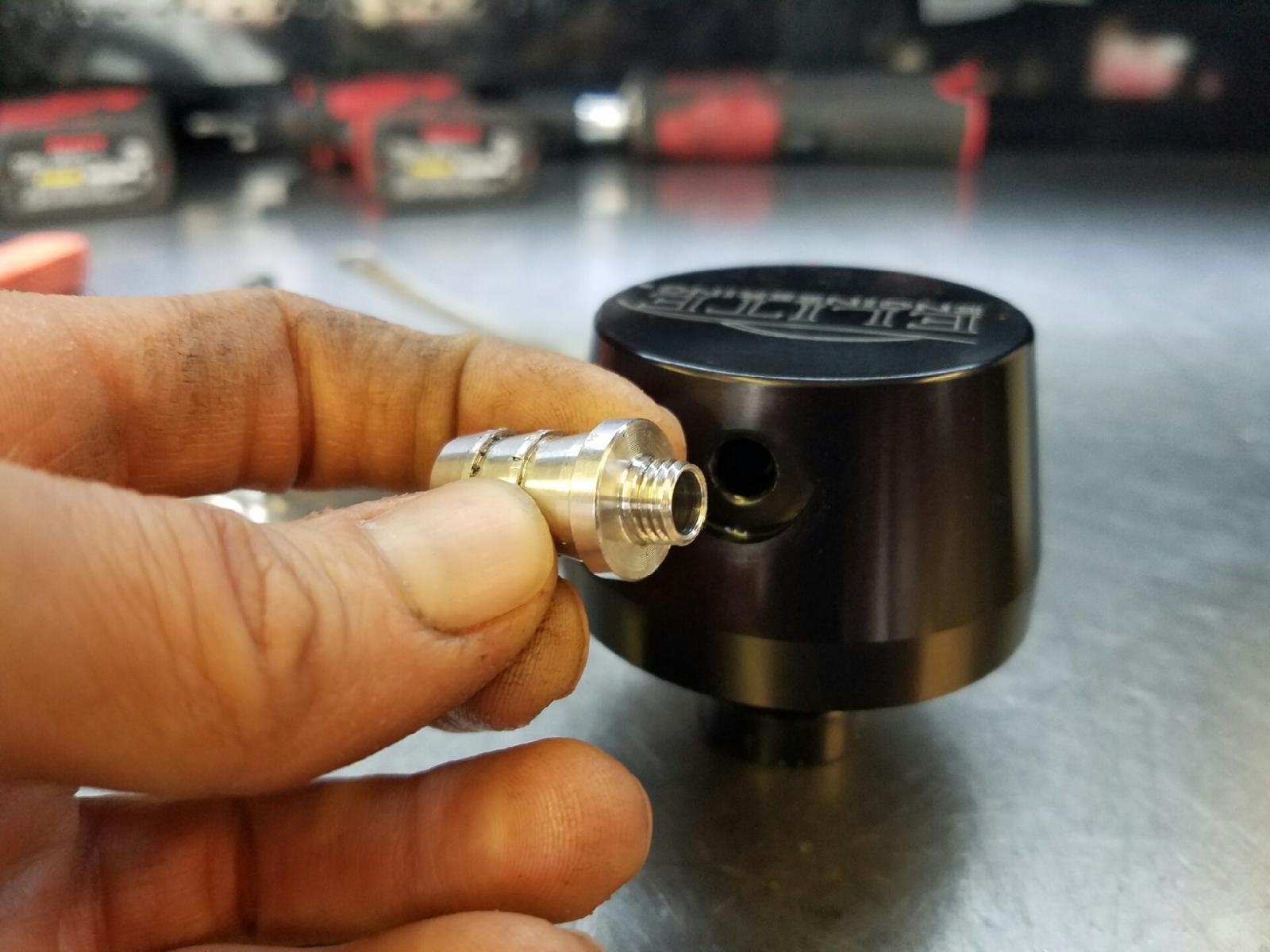 Plus I think these 3.6 engines make crankcase pressure even in stock form. That's what happened to my original engine, pressure pushed oil out the clean side and into the inlet of my turbo until my intercooler filled and let the engine gulp it in and hydrolock. Plus I work on cars and suv's with the 3.6L everyday here at the shop that are stock and they have pools of oil pouring out of their intake tubes and throttle bodies(coming from the valve cover through the clean side). Here's a pic of the orings and the barb (me holding a 3/8" hose next to it).