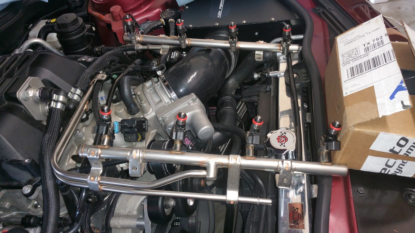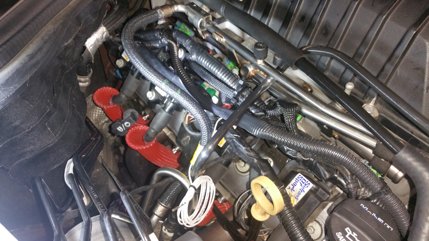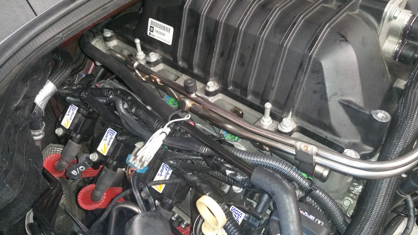 Well, today, I started the Flex Fuel sensor and ID1050x injectors (ID850's for sale! $550 shipped < 800 miles on them -- darn flex fuel setup ;o) I started on the Flex Fuel sensor -- seem straight forward until I tried to install it on the fuel line -- just would not click. Took off the slip on connector, tried it that way, just would not budge. Call Dave and asked him about it -- seems the orings inside my be a bit tight -- so, used my favorite lube: ![]() lightly coated the fuel line, and -- click -- slipped on like butter -- that is the way to do this, lightly coat the fuel line and snap this puppy on: ![]() ![]() ![]() Added the harness to the nearest coil pack and put it in series with it: ![]() The last thing to do is add the sensor wire to pin 40 -- I'll do that later. Next, the injectors. There are plenty of examples on the forum on how to remove the fuel rail. The key item to remember is unbolting the hat bolt on the passenger's rear in order to remove the rail: ![]() installing the id1050x injectors: ![]() ![]() Honestly, was pretty simple! Next installed the injector connectors, fuel lines, and coil packs: ![]() ![]() ![]() ![]() Installed the fuel rail bolts and tighten to 89 inch lbs - also tightened the hat bolt I loosened. Now, just need to do the wiring for the pin-out #40, the wiring for the pump, DSX FPCM, and then the tune! BTW, here is a DIY done by BigMatt (Note, this is for the SS, not the ZL1): http://www.camaro5.com/forums/showth...=DSX+Flex+Fuel -Don
