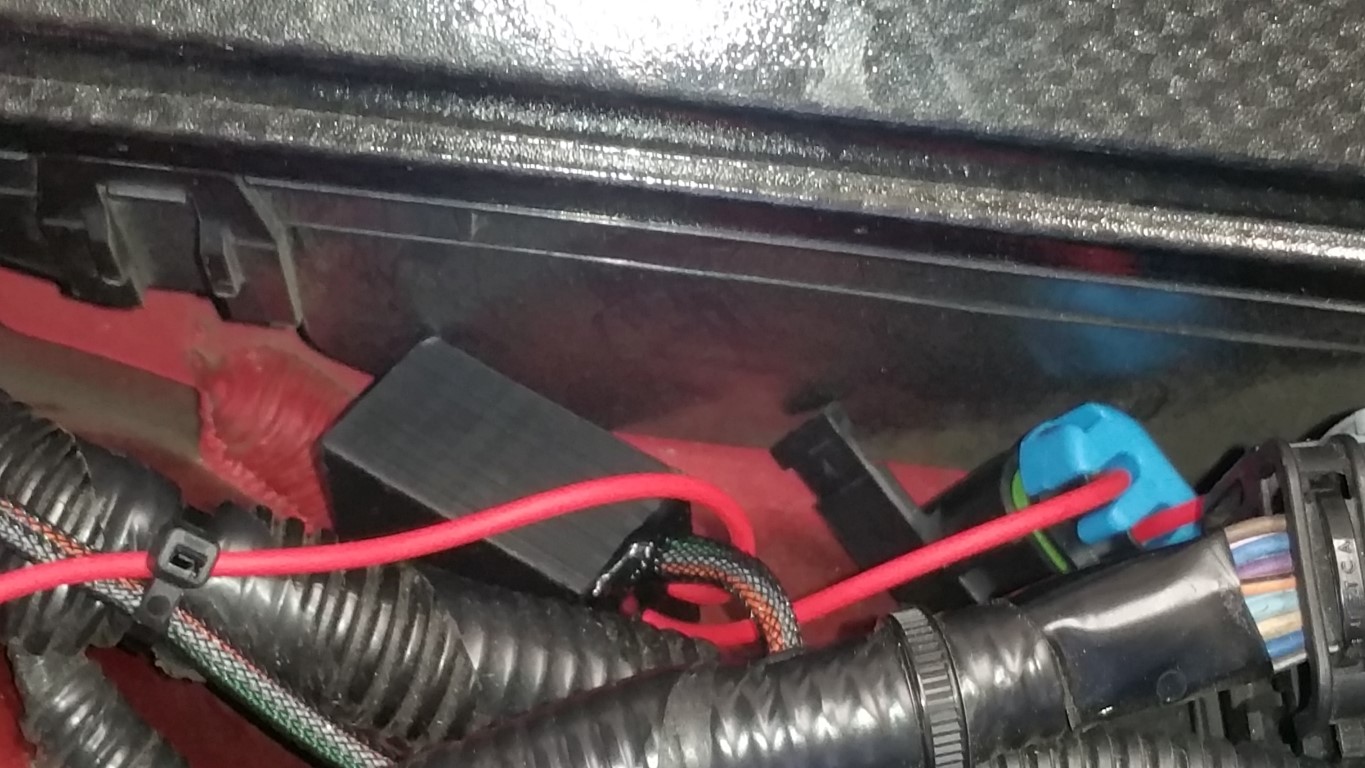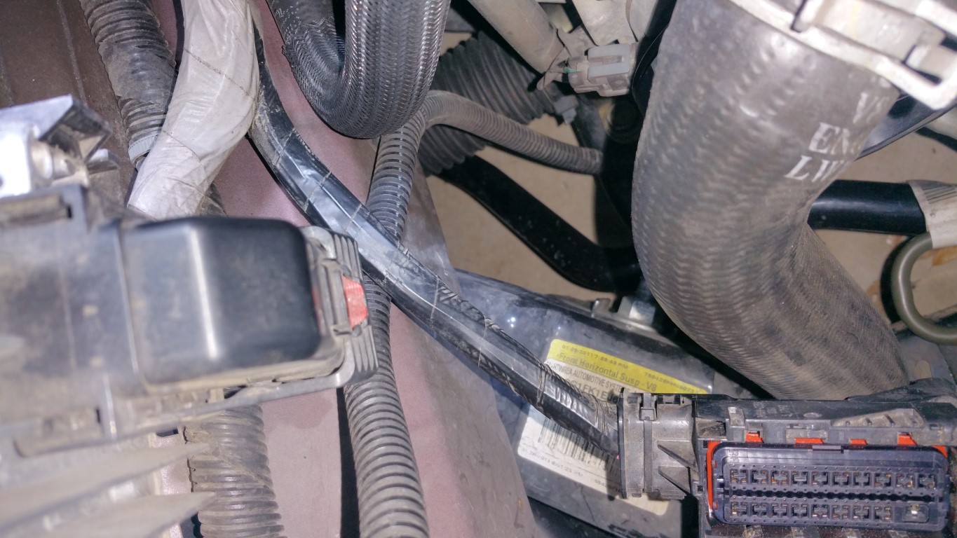 First, the connector is the one nearest the radiator, and has the black tape on it: ![]() ![]() ![]() Next, I removed the cap to expose the pins (BigMatt showed this): ![]() ![]() Next, removed the cover for the wires and removed the zip tie: ![]() Now here is the key, see the black 'circle' caps? Once you've located pin #40, use an awe to punch this out, and then chase it with a paper clip. This will make sure you don't oversize the area for the pin (I only push the awe just enough to punch threw the top): ![]() next, put the pin in until it clipped in: ![]() Button things up after that, zip tie on wires, cap on pins, cap on wires, plugged in the connector, routed the wires, and then covered the wire where its near the header: ![]() ![]() Next, I started on the aux pump. I first ran the wires from the 3 Bar Sensor, to the fuse box: ![]() ![]() After I routed this, I then uploaded the tune from GPI and stated the car, just to make sure nothing was amiss. Started right up and no codes! I ran the car so I could get the 'low fuel warning' and I did after about 20 minutes of running. Here is a video of it running with the sensors hooked up, and the new ID1050x injectors: Next, after things cool, will be the aux pump setup! -Don