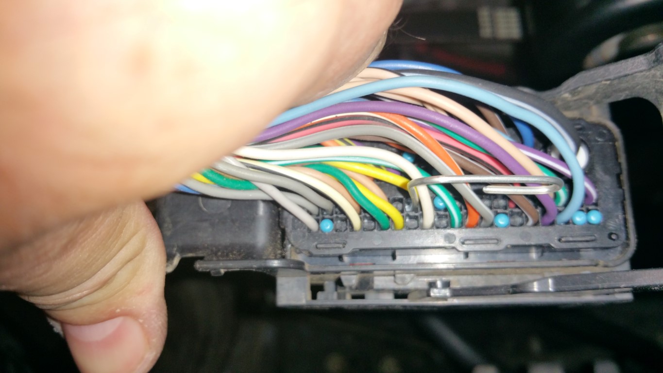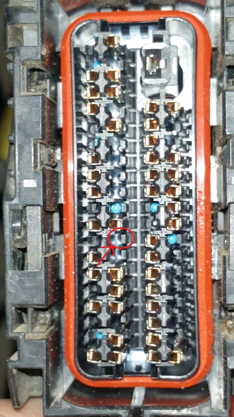 Ok, this morning I did pin #40 in the ECM connector. I have a few pics to id the 'cap' you need to remove, and, to ensure its out, I used a small paper clip to push out any piece that may have been left -- both from the bottom and from the top. Once I did that, I made sure the pin was oriented correctly, then, pushed it in -- tugging to make sure it was all the way in and would not come out.