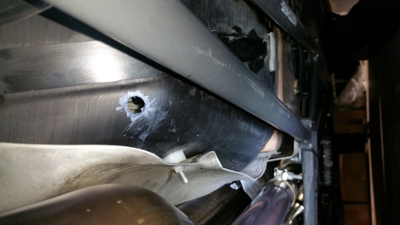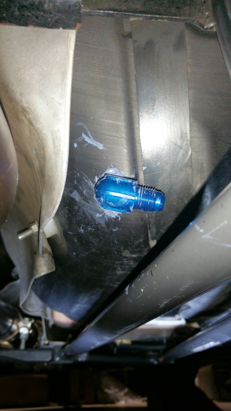 Well, thought I was going to do that, but, the fitting for the tank was not in the kit. Contacted Dave @ DSX, and bam, he was able to find me one TODAY (Saturday afternoon!) from a local source. That is customer service! He knew I had to make it to fest and helped me big time (this is why I normally don't do big projects right before I leave -- and my wife was so kind to remind me of that). Anyway, with that out of the way, I proceed to drill the tank. I know this scares everyone, but the tank is really forgiving if you mark your location, drill slowly, steady, and don't apply a lot of pressure to the drill -- just let the bit do all the work. Went smoothly. First, I used a automatic center punch to mark the location where I wanted to drill (per instructions): ![]() Once I broke through, the chips and gas flowed to my 'waiting' pan: ![]() Raised the left side of the car to stop the flow of gas from the tank: ![]() Using hemostat clamps, took out any remaining chips from the drilling: ![]() Now using the supplied tap, started the tap straight, then, using a 16mm socket, slowly cranked the tap in: ![]() ![]() ![]() Stopped when you hit the black tape line. Now, using the hemostat clamps again, just pull any remaining chips out. Clean and prep with the sealant: ![]() ![]() ![]() Follow the instructions, and when you get to where its starts getting snug, align it as requested. See, not bad at all! Just go slow and steady and let the drill/tap do the work... Pump install is easy -- I have a late year '11 and of course, has the hole with the proper nuts installed -- made doing the pump a snap: ![]() Next is the hardlines, fuel lines, and wire up the pump! That will be in the morning... I'll do the DSX FPCM before I startup the car: ![]() Then, go buy some 'corn' and fire it up! -Don