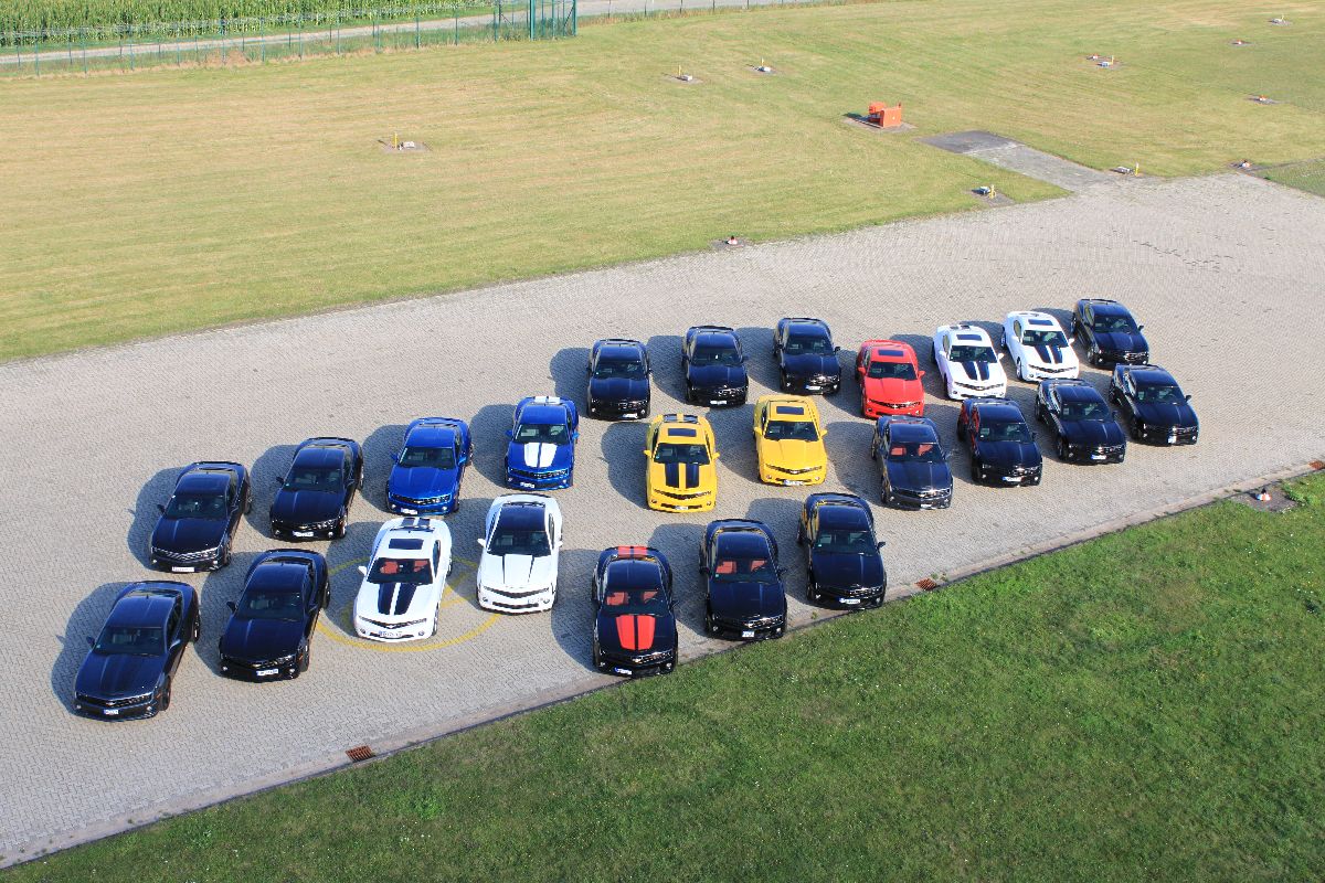 Chevy Bowtie formation with 24 Camaros (German C5 Fest)