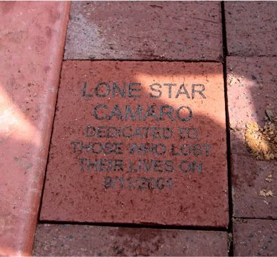 This memorial is a bronze sculpture based on the design of Bryce Cameron Liston of Salt Lake City, Utah and sculpted by Dean Thompson. It is executed in the Grande style which is one and one half life size. The Memorial has five figures; two pilots, two flight attendants, and a child representing the traveling public. The figures are 14 feet high and, with the base, stand 18 feet tall. It is sited facing west on a compass rose. Engraved pavers encircle the site. The figures stand on a single block of white Texas limestone. The names of the crew members of the 9/11 flights are engraved on slabs of granite surrounding the base. It is truly beautiful and awe-inspiring. Thanks to the support of Lone Star Camaro’s members and guests, Eric Hall and the team over at Classic Chevrolet, Grapevine, we were proud to present a check for $3,500.00 to go towards new lighting for this awe-inspiring memorial. With this donation, Lone Star Camaro was honored to have an engraved double size brick that read “Lone Star Camaro - Dedicated to those who lost their lives on 9/11/2001” permanently placed at the memorial site. With nearly 75 Camaros, Lone Star Camaro then headed to Texas Motor Speedway for our 2nd time in less than a year for Laps for Charity. Speedway Children's Charities (SCC) remains true to the ideals it was founded upon in 1982: To care for children in educational, financial, social and medical need in order to help them lead productive lives. For a modest donation, Lone Star Camaro members and guests were able to take three laps around Texas Motor Speedway track in our Camaros. In addition, there were additional donations for pictures in Victory Lane, souvenir t-shirts and additional lap runs. Lone Star Camaro was able to raise nearly $3000.00 for Speedways Children’s Charities. For the 2nd time in SSC Laps for Charity history, Lone Star Camaro was the largest car group in attendance. With the help of Classic Chevrolet, Lone Star Camaro, and Camaro enthusiasts from all over Texas, raised a combined total of nearly $6,500.00 for 2 great causes in 1 day. We are proud to be of assistance to these wonderful organizations. Lone Star Camaro ![]() ![]() ![]() ![]() ![]() ![]()