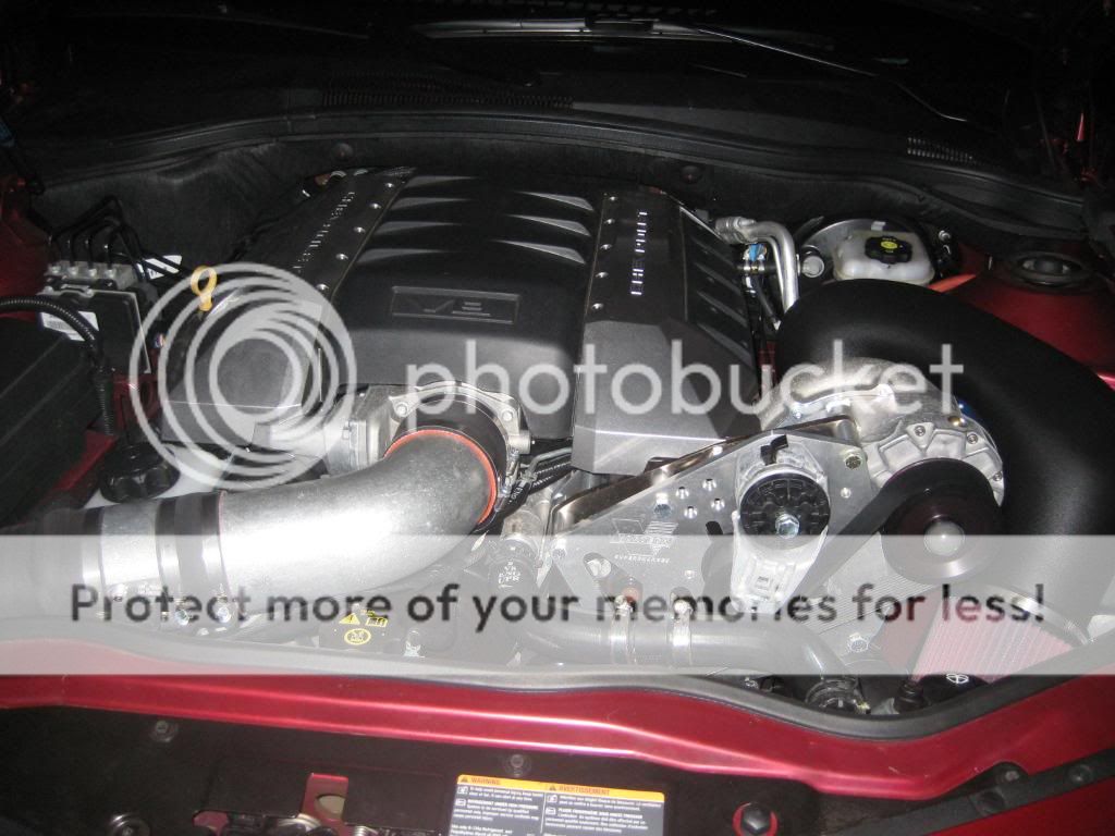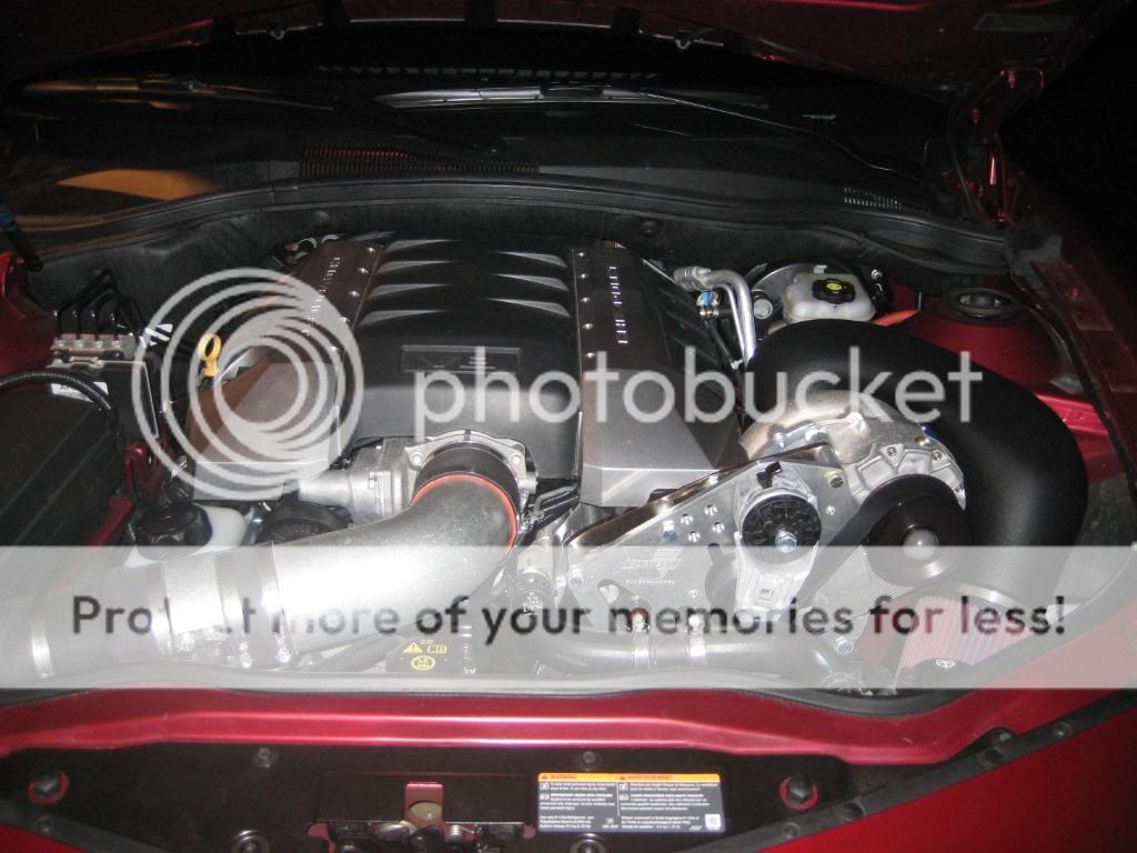 I have a 2010 Camaro SS LS3. First I like to thank Mike over at RMCR for GREAT customer service and price, honoring a deal loonnnng after he had to. Thanks again Mike! Also like to thank Vortech for putting together a great kit. Second I like to thank the shop that did the install, Im out in Jersey so I had the guys over at E-Shift Performance do the install for me. If anyone is in the Central Jersey area that needs a good performance shop I highly recomend them. Besides doing great work, Mike who is the owner came in on a Sunday after noon to open the shop up for me to drop my car off, and stayed over 2 hours after the shop was closed to wait for me to pick it up and went through every detail of the build with me. Ok now that my OSCAR award speech is done lets get down to the numbers. First the before Dyno numbers. First run they did was with just the K&N Typhoon CAI and it made 378HP Next run was K&N CAI and QTP cutouts and it made 395HP I know people have been asking about HP gains with CAI and Cutouts so that should be a good idea on most LS3 engines NOW FOR THE GOOD STUFF!! First run they did was with the Vortech V3 system.. Car pulled 523 HP ...Thats a bone stock Camaro LS3 with just the Vortech added Vortech Canned Tune and no other mods. The last run was 520HP with the cut outs opened...So pretty much with the Vortech the cut outs do nothing. Im waiting on the e-mail of the video of the SS on the Dyno and I will post up the Dyno Graph later today when I get a chance to scan it. So for now Im pretty happy with 523, gonna save up a few months for a LT Headers, Full exhaust and custom tune. Time to change my sig. Got some pics in and a quick video of the Boost guage and idle with a quick rev. ![]() ![]() ![]() ![]() ![]() ![]() ![]() ![]() ![]() ![]() Dont know how to embed the video so here is the link, if anyone could embed it that would be great. Thanks