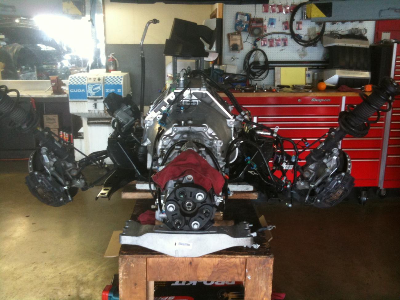 Maggie tvs 2300,3.6 pulley,65lb fuel injectors, roto-fab cai,catch can, ported heads,MTI stage 2 camshaft,NGK TR-6 spark plugs,MTI short throw shifter,lonnies performance dual fuel pump,BMR rear trailing arms/toe rods,Eibach pro kit springs and sway bars,PFADT differential bushings, AR 17/8 headers,corsa cat-back exhaust and LPE ZR-1 twin disc clutch. |