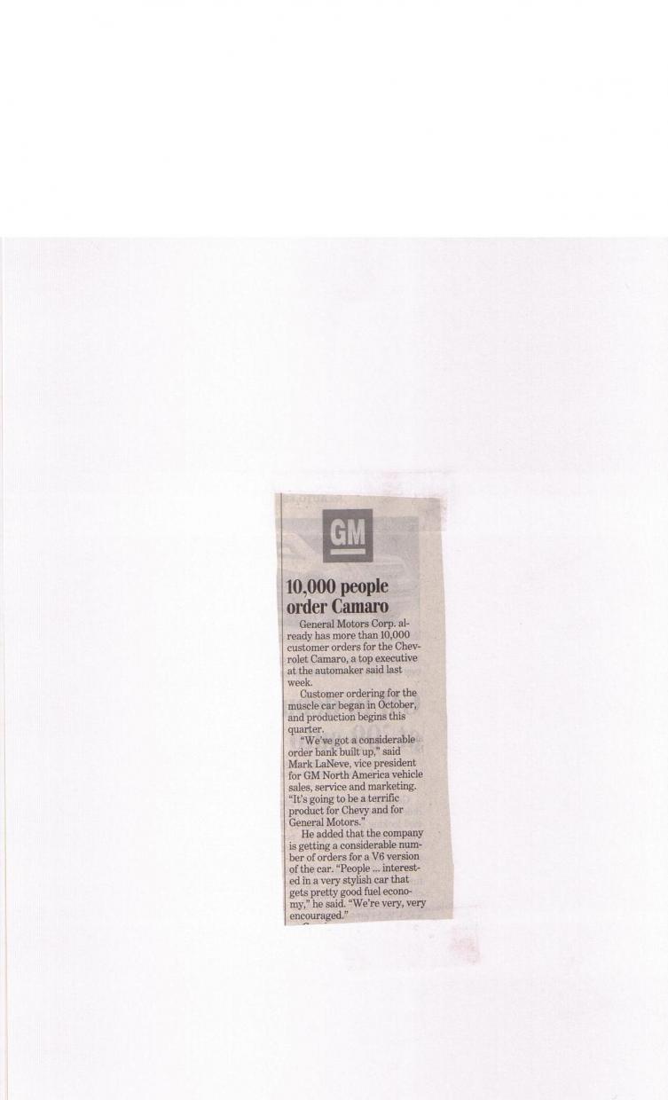 Found this in the paper today. 10,000 camaros ordered