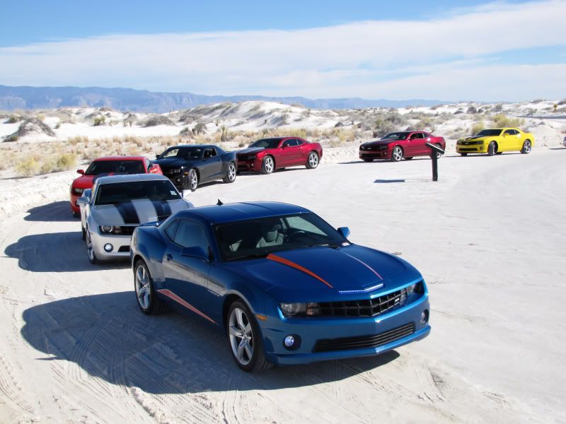 Camaros from El Paso,TX, Las Cruces and Albuquerque,NM came together and met at Las Cruces to have pancakes at the International House of Pancakes. Yum! Right breakfast everyone gathered and drove to one of the world's greatest sites White Sands National Monument whose other visitors were struck with aw as the caravan on Camaros of various colors cruise, literally, at about 9mph through the hilling dunes of burning snow. It was a great day to spend outdoors and also a great day to make new friends in the Camaro5 community.