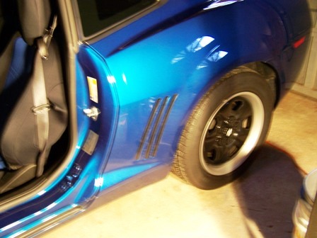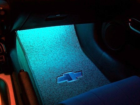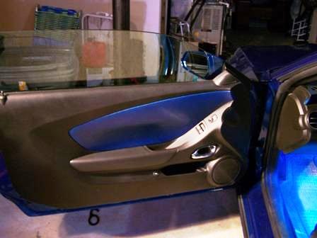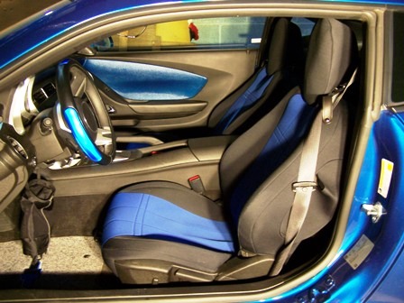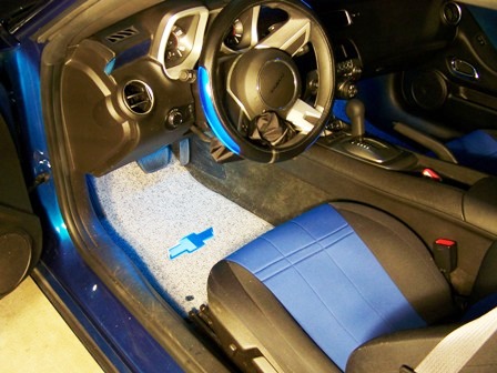 After putting in the seat covers I just could not live with the gray door panel - dash inserts so I ordered some matching touch-up paint and following the instructions here http://www.camaro5.com/forums/showth...+panel+removal removed them and painted them then sprayed a couple of coats of clear-coat over everything. Reinstalled after letting everything dry for about 10 minutes (dries QUICK!) It was actually way easier than I thought!! (Feel free to PM me with questions) Then I ordered some custom floor mats with the blue chevy emblem embroidered on. I added some footwell lighting and replaced the dome light with a blue LED. Added the vinyl bow tie inserts and vinyl gill inserts, that actually help prevent chips on my gills..Overall I think everything came out pretty good, but I'd like y'alls opinions...too much BLUE???? |