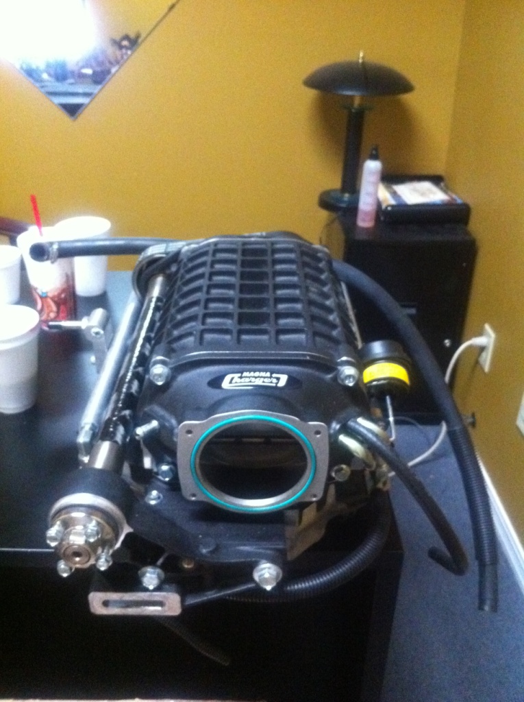 Install the water hoses for the intercooler system on the back of the supercharger before putting the supercharger in place. I found this out the hard way and, it took longer than it should have being; it was the hardest thing to do working in the space provided.