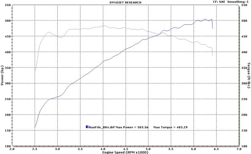 We just pulled this off the rollers this morning. The install is super clean and most all the fittings on the kit were quick connect or AN style. Not to mention the power this thing pushed was pretty amazing for a bone stock car with just the whipple bolted on. The car layed down 503 rwhp and 483 rwtq on 9#'s.