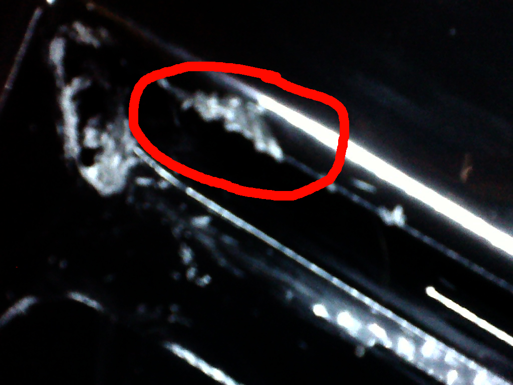 I edited the picture to highlight the scarring a little better. Sorry its so crappy. Only have a camera phone. The g/f is a photographer and she has the camera at school with her. Anyway, if you need a better image take a dremel and gouge the top left corner of your mailslot.