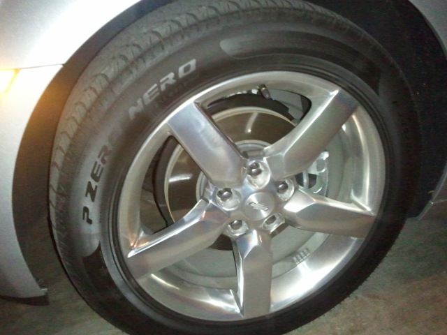 The wheels are 19" bright-silver painted aluminum and the tires are Pirelli P-zero nero's 245/50/19 on all four.