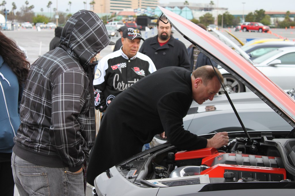More and more people showed up for breakfast with Scott mingling and chatting with us, and around 8am or so, Scott sat us down and gave us a little information on the status of Chevy as well as the details of the test drives we were about to do. He then answered all our questions (some without answering) and sent us on our way. Not before coming out with Sharpies in hand to everyone that had an open hood or car door. American Revolution had a squad of about 8 or so cars rolling up in a convoy as we made our way out to the car corral. They roll deep and everyone of them sounded like a beast! It was nice meeting you Alfan and crew! After taking the shuttle past the car corral to the test drive stations, there was a huge lineup of cars to drive from GMC/Buick/Chevrolet including the volt, cruze, equinox, camaro, malibu, corvette, silverado, and tahoe hybrid. Every station had informated employees waiting to answer any and all of our questions. There was a tremendous turnout even through the torrential downpour that started as soon as Scott was done signing our cars. All in all it was a great day and I'm glad I was able to share it with some many enthusiasts. Hope to see you all next time! and without further ado, pictures are below. |