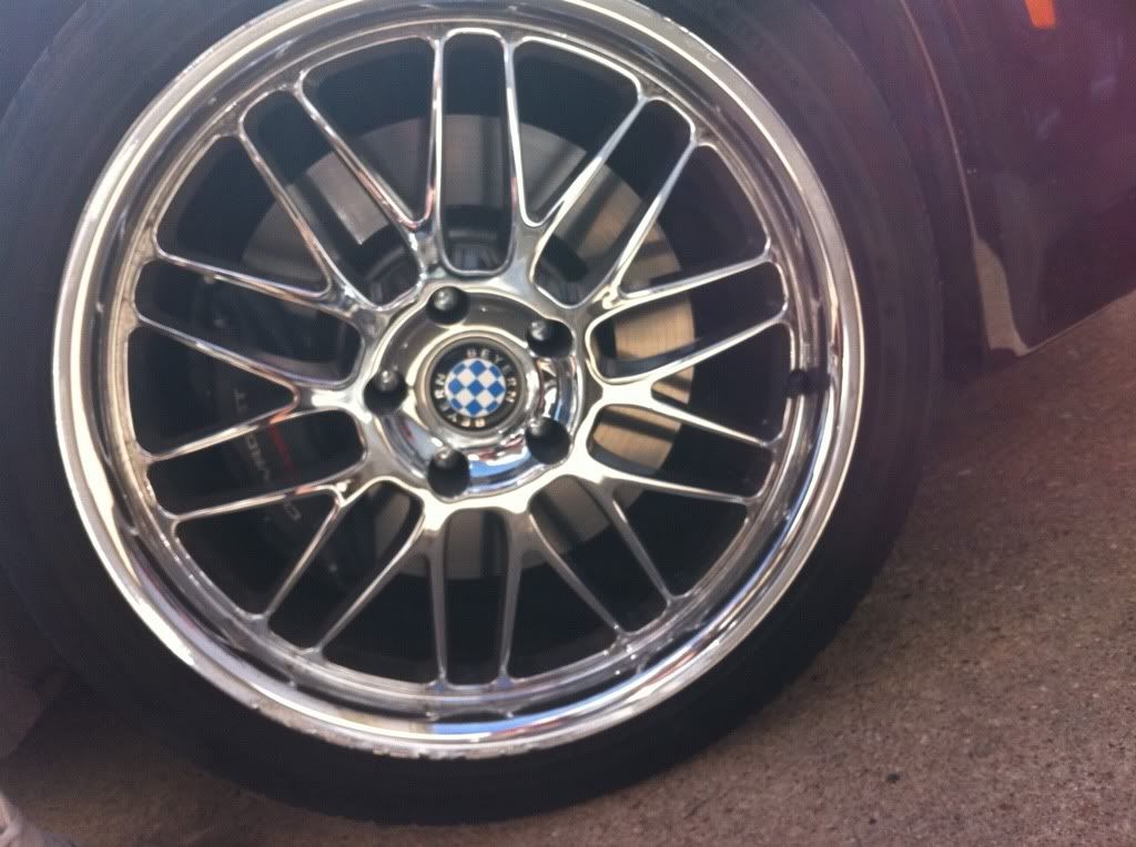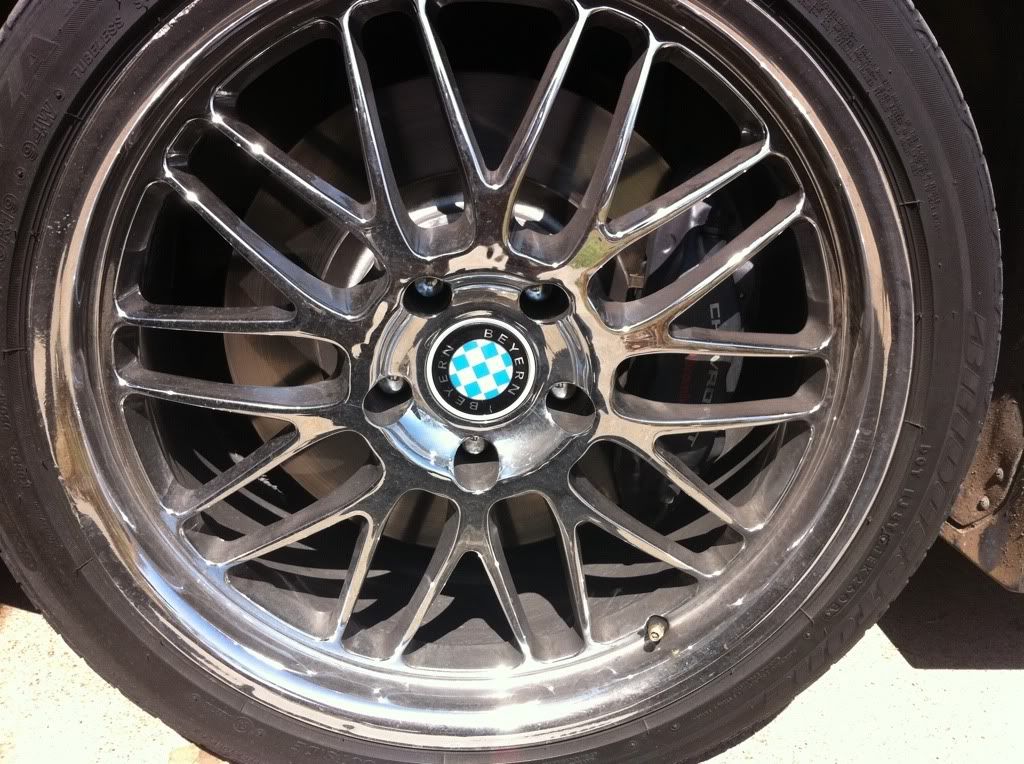 I have 4 beyern mesh 19 in wheels chrome staggered 2-8.5in 2-9.5in 1-8.5in chrome lip silver painted center One of the 8.5 in wheel is bent so a guy local was selling one and I bought it. It's a painted center with chrome lip. I was going to powdercoat them all black so it was no problem to me. these will fit over brembos, i have brembos on my G8 I'm looking for 600 + shipping. Or local pickup in dfw or trade for other 19in wheels That's for all 5 rims. All you would have to do is get the one rechromed or powdercoat them all http://i134.photobucket.com/albums/q85/iisme13/c37e0880.jpg http://i134.photobucket.com/albums/q85/iisme13/df7d2983.jpg http://i134.photobucket.com/albums/q85/iisme13/e756ec55.jpg http://i134.photobucket.com/albums/q85/iisme13/d2bf3afb.jpg http://i134.photobucket.com/albums/q85/iisme13/f8c2857c.jpg http://i134.photobucket.com/albums/q85/iisme13/ae287d3b.jpg http://i134.photobucket.com/albums/q85/iisme13/7a95294a.jpg http://i134.photobucket.com/albums/q85/iisme13/338c3eed.jpg http://i134.photobucket.com/albums/q85/iisme13/aa68fd5b.jpg http://i134.photobucket.com/albums/q85/iisme13/47c32f34.jpg http://i134.photobucket.com/albums/q85/iisme13/0b1dd04f.jpg http://i134.photobucket.com/albums/q85/iisme13/42488e1c.jpg |