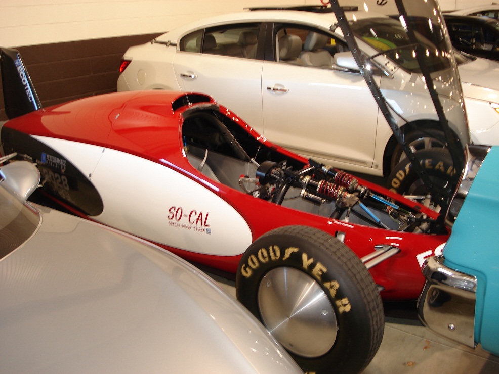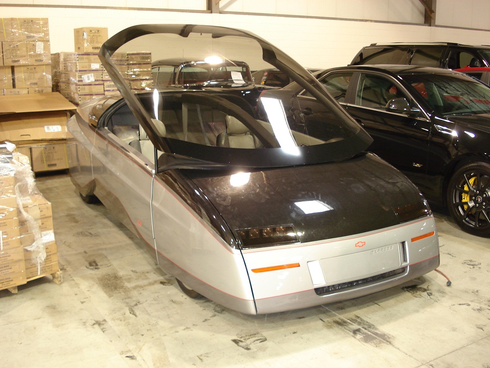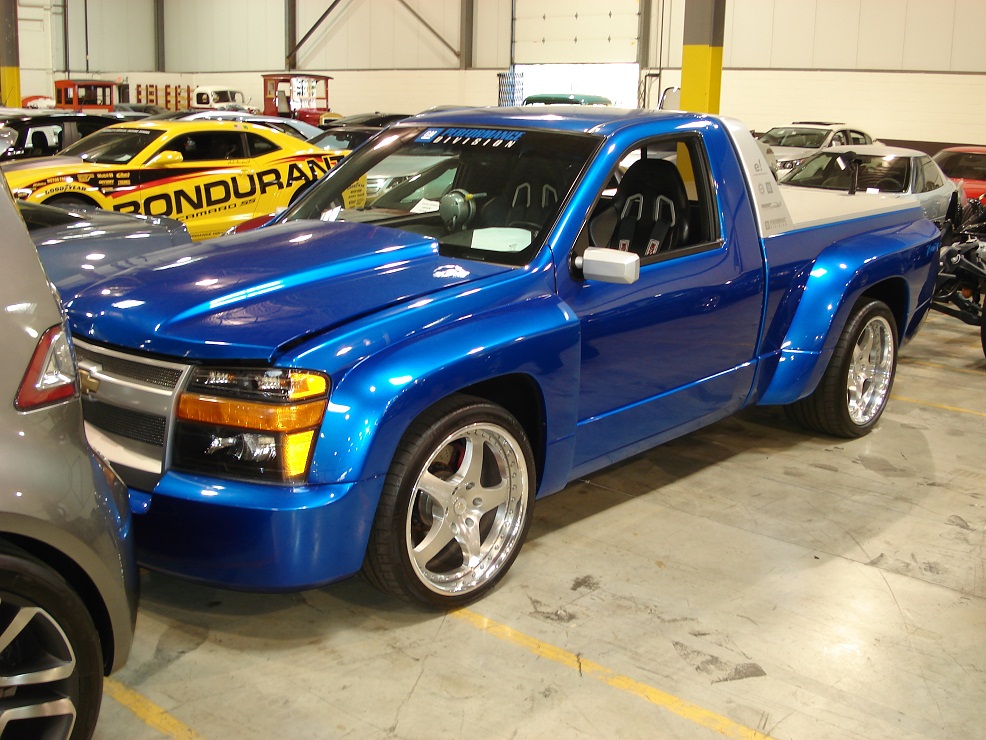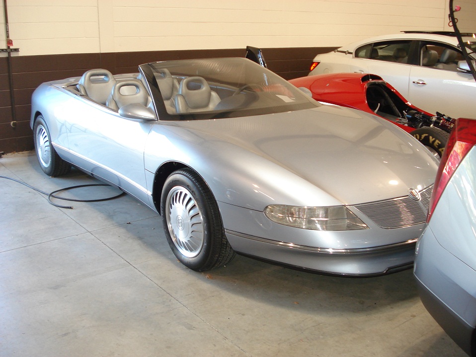 I went to the Woodward Cruise this last weekend. Arrived Friday at 1:00 in the afternoon to meet all the SSR Fanatics at the GM Heritage Center. did our tour there, it was awesome. So I am leaving and the building across the street, the doors are up but they have a gate across the entrance. Being the nosy person that i am i go over to take a look cause it looks like some cool stuff. Looking in the gate there is some car that looks like a concept Buick Riveria convertable and on my right is the concept Pontiac Solstice. Looking further I see the Vette speedster from the T3 movie.