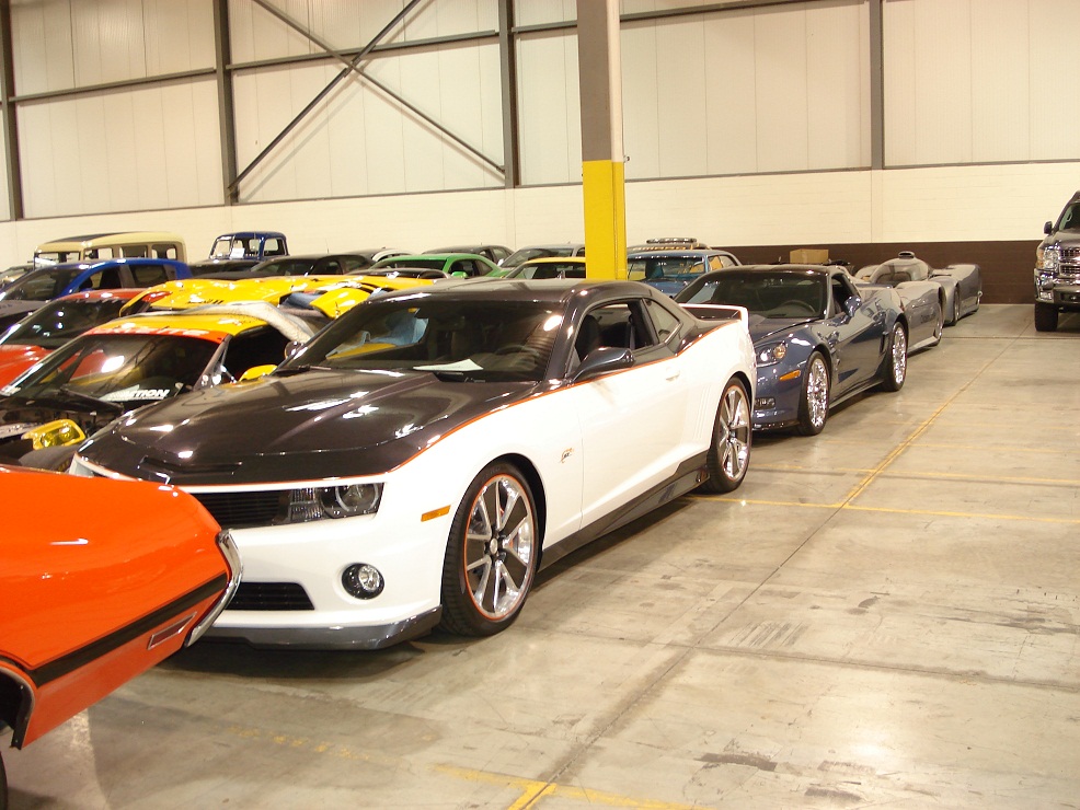 So a guy walks out of the office and says "how you guys doing?" I say "good" do you gotta chase us off? He says "no, you can come in and look around if you want" All pre-production, concept, sema or movie cars in there. It was awesome. So we see this Camaro in a different blue color than the production models have with a kind of a burnt orange tan interior. My wife asked the directer about it and he said it was built special for Jim Carrey. So here are some pictures of it and some of the other notable vehicles in there.
