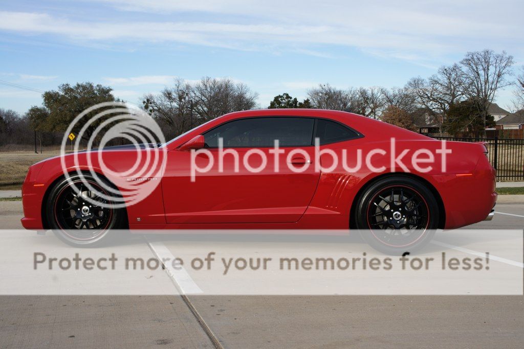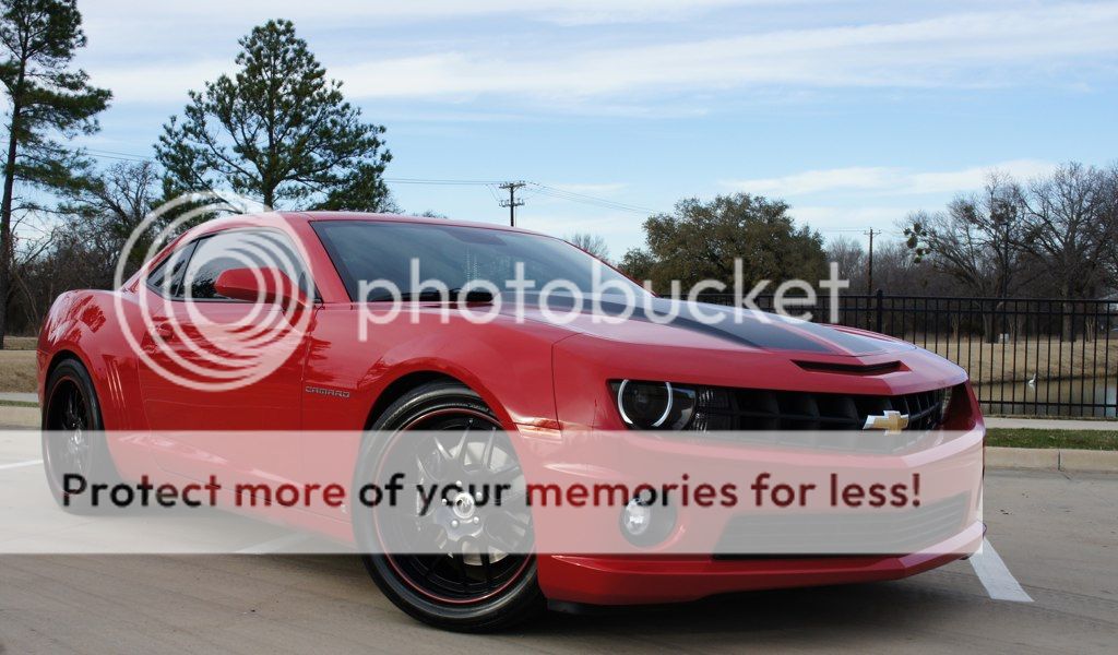 Here are textured black 22s on our red Camaro. Does your car have stripes?