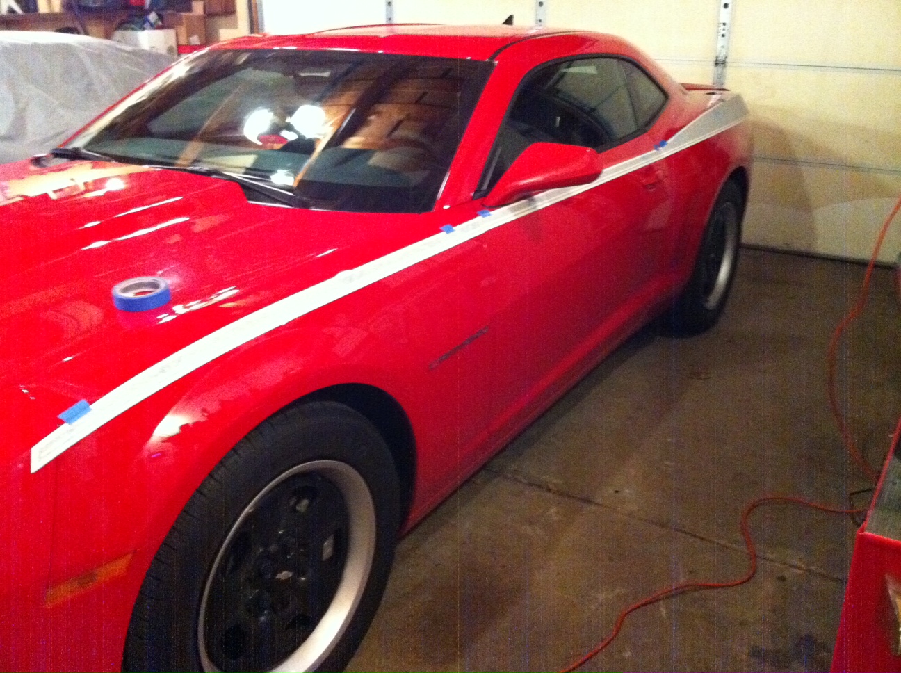 Over the last couple of weeks in November, I was talking to my wife about wanting to buy a different car. She's a receptionist at a local Chevy dealership. She priced a Cruze out for me and it was about $15 more than I was currently paying on my 2008 Trailblazer. She was saying that was the best priced car she could get me right now. I told her if I'm going to pay more for a car, I wanted to at least price out a 2012 Camaro. Surprisingly, the 1LS only raised my payment by about $25. I had always thought the Camaro was unattainable and would cost way too much and to find out it was only $25 a month more... I pulled the trigger without even thinking about it. ![]() I turned in my 2008 Trailblazer and immediately fell in love with my new car, a 2012 Camaro 1LS. I've never owned a manual trans car before so the first challenge has been getting used to driving a stick on a daily basis. I already knew how to drive a manual but I'm still trying to get used to when to shift instead of staying in the lower gears too long. What amazed me today was when I was going through McDonalds and I pulled up to the second window. A little boy was walking towards the building with his dad when he pointed at my car and went "WHOA LOOK AT THAT!" The car has been out for 3 years now and to still be getting that reaction... that was cool. Here's a picture of my car at the dealership before I took her home: The first modification was to cover up those ugly gold bowties. I've gotten the reputation on the forum I run, MiFbody, that I'm kinda carbon fiber crazy. So of course, when I saw the CF vinyl bowties, I had to get them. Next was to get some gills: And yesterday, after getting the stripe kit for Christmas, I had to immediately install them in the garage while it was still warm. Glad I did it when I did - it was 50 degrees yesterday and tonight it's dropping to the 20's.
