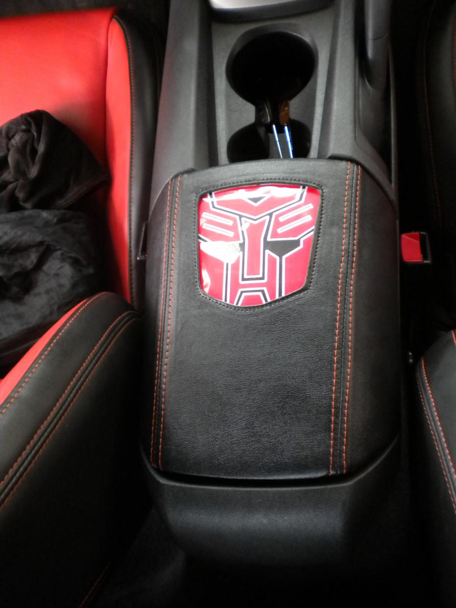 So my girlfriend Rita and I were walking down the Vegas Strip, where I live, and saw one of those light up to the music shirts. I was like I need that in my car. She remembered I wanted the center console to look like the Transformers edition and suggested the Transformer one... Well the one we saw was blue, so hello E-bay and $11 later I had an orange one and a free shirt... I custom wired a DC inverter to power it. One of those cig adapters. I added the voltages of the 2 AA's batteries running it, selected that voltage and wired it in place of the batt's. Good luck our car's having 12V outlet's in the center console. Oh, than the upholstery... $200 something dollars later it is better than factory and has the orange stitching. Trust me, it get's the biggest grins ever!!!