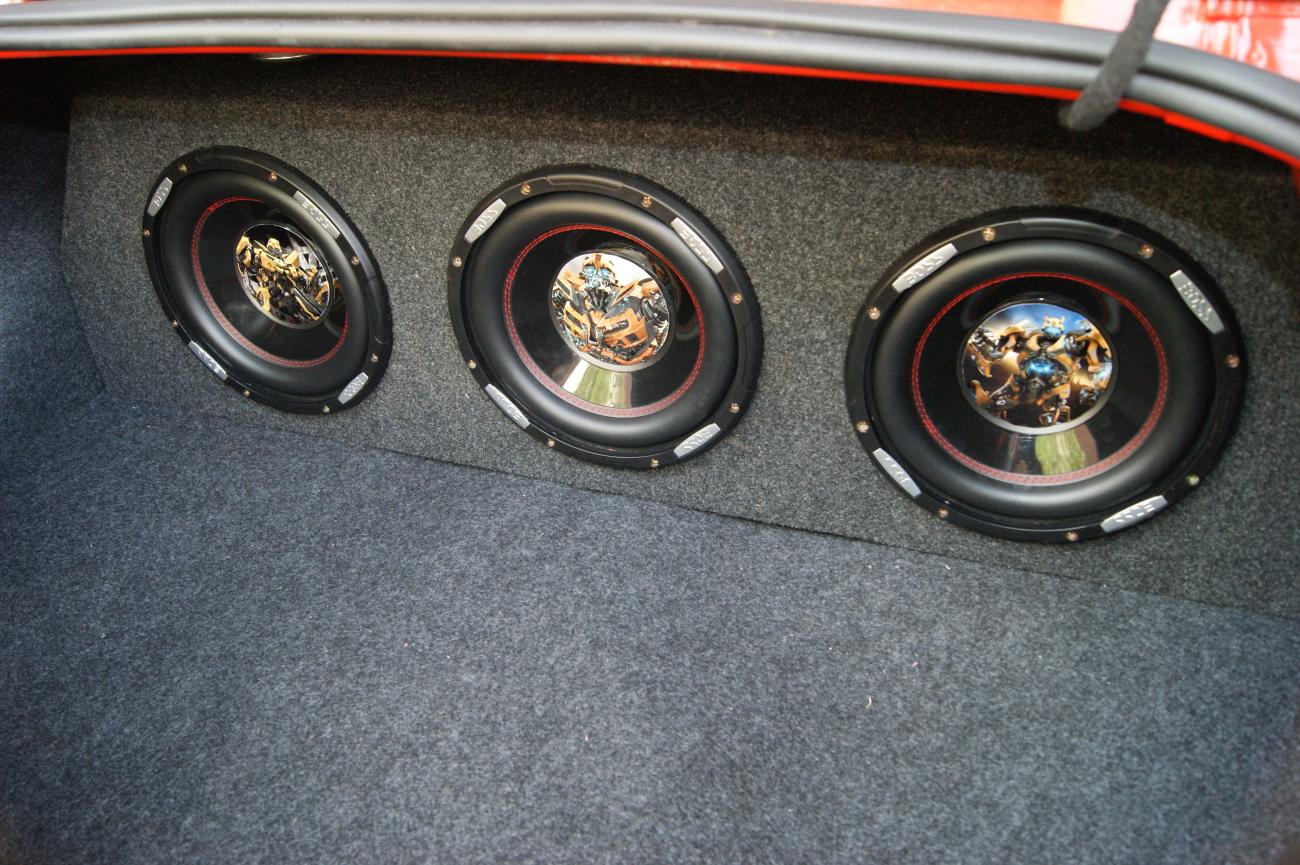 The pic's show my wiring behind the headunit, the big magnet's on the woofers, the amp and wiring job with capacitor and subs. Check out the finished sub pic, totally Transformers I simply took some poster quality images off Google, printed them at Wal-Mart for $.16 each and stuck them on with double sided tape. 1 year and they all work and look perfect