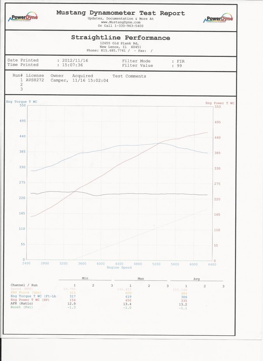 This is on what they call a stingy A$$ Mustang dyno. I believe he had some runs in the 465-468 range. The tune isnt to aggressive and has a little left on the table.