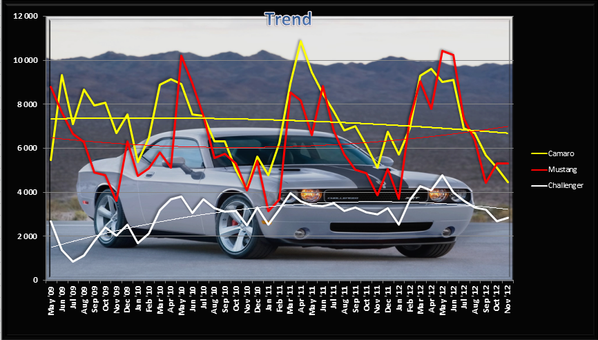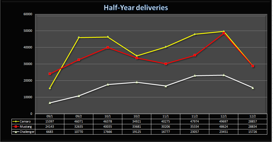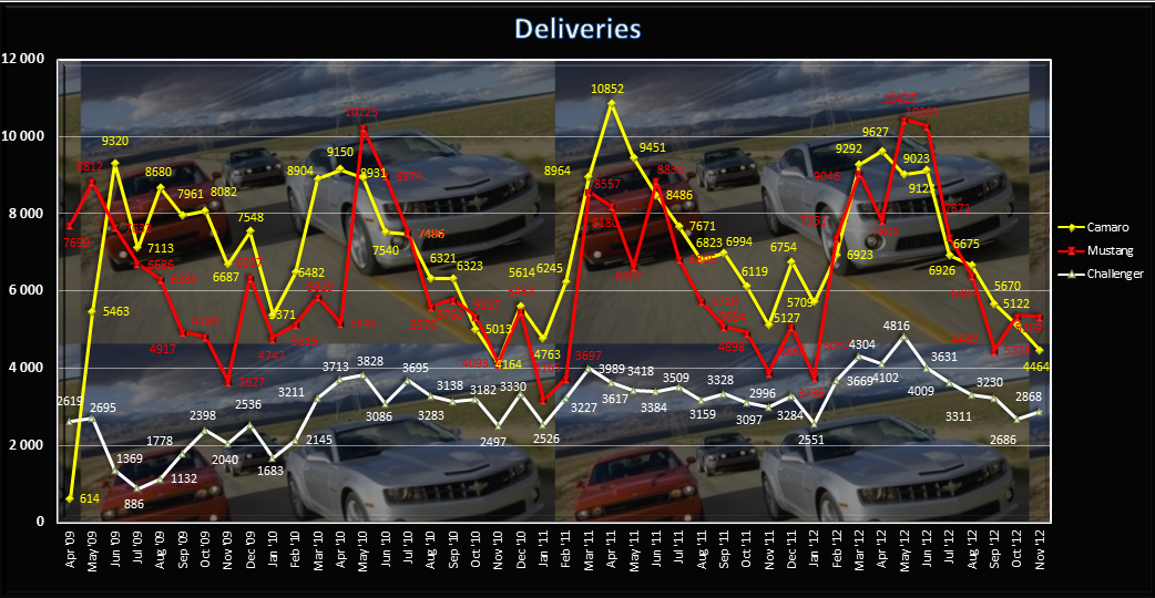 The facelifted '13 Mustang is helping their case of increased sales. The trends are telltales signs... Camaro sales have recently dipped more consistently when compared to Challengers and Mustangs which are getting more & more attention. Was hoping the ZL1 and 1LE would boost sales of the more normal variants. The trend is interesting... definitely volatile.