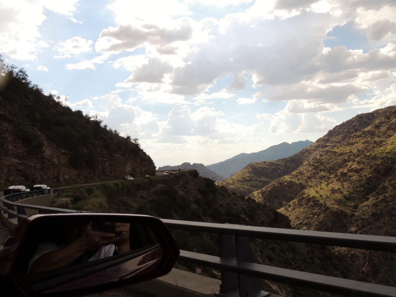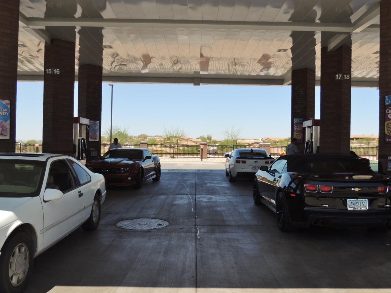 So yesterday the AZ All Gens Camaro Club did their annual Mt. Lemmon run. Around 52 Camaro's participated. Most from the Phoenix area but we also had cars from Tucson, Sierra Vista, Casa Grande, and many other areas of AZ. Temperature was around 98 degrees at 9am in Phoenix when we started. By the time we arrived in Tucson it had climbed to 103. After a quick (2) stops (one) to top off the tanks and the (second) to meet up with some additional Tucson members. We began the Mt. Lemmon climb. The temperature at that point was 105 degrees. But that all changed once we got up to the top of the mountain. 58 degrees and some off and on rain showers is what awaited us. The turns, ups and downs, switchbacks and straight aways were awesome to say the least. Unfortunately I have no photo's of the ride up the mountain but I do have video.