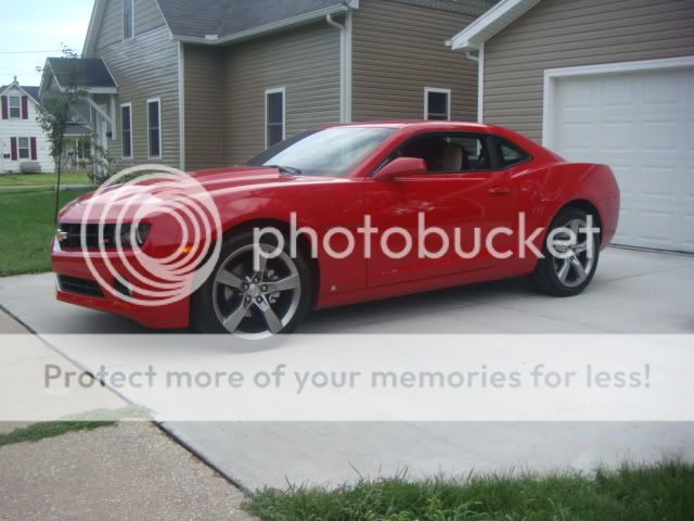 So coming into town after work I knew it was going to be a slow ride in. Sure enough a few miles outside of town traffic comes to a stop to allow a large group of bikers to pass. It was a fairly nice day out, so of course I had my windows down enjoy the weather. As the bikes were passing by I believe I counted about 5 people that said 'Hey nice car man!' or something to that effect. I smiled, waved, said thanks. Managed to get into town and stopped to fill up with gas, a guy came over to check the Camaro out. Told me how he'd like to get one if he can convince the wife. I told him to let her know the Camaro's have EXCELLENT safety features and crash test ratings (well nothing official that I know of, but good real world results thus far). It had rained earlier, so I had to wash her off (be darned if I was gonna show her off all dirty!) As I was drying the car off in my drive way, a ton more people threw compliments my way. Looked up at one point from drying and there was an older guy on his bike doing a thought that was funny A bunch of people asked to check it out, I answered all the questions they had while they were drooling. Made sure they weren't misinformed ![]() Looking back on it, I wish I would have asked my salesman for a stack of business cards, bet I could have got him (or at least GM) some sales that day! Speaking of which, salesman called yesterday to see how the car was doin. He said 'well, it is the first model year for the new models, so there tends to be issues. Just making sure you weren't seeing any!'Love this car, and people's reactions to it are great (and even when there are a ton of these out there I'm still gonna love it just as much). Here's some photos of Candy (short for Eye Candy )![]() ![]() ![]() ![]() ![]() ![]() ![]() ![]()