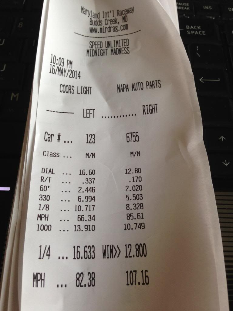 thought this was pretty cool. Dialed in at 12.8 and ran a 12.800! idk how often that happens but im pretty sure it cant happen that often.