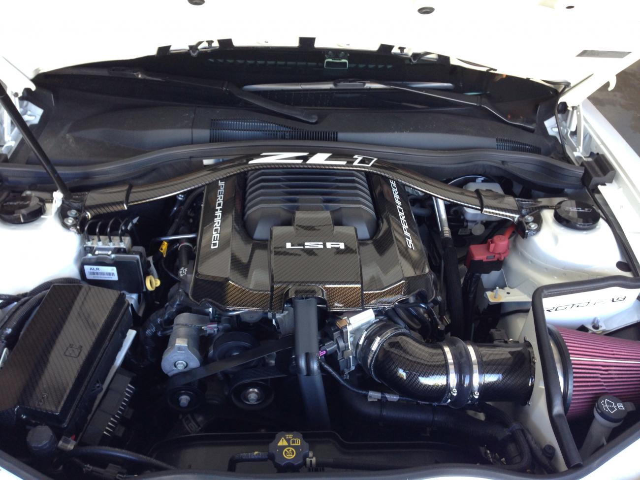 Rotofab Cold Air Intake, Black Air Box, No Decal, Hydro Carbon Finish Rotofab Big Gulp Air Scoop Rotofab Windshield Washer Fluid Reservoir #2 Rotofab Fuse Box Cover, Hydro Carbon Finish Rotofab Strut Brace, Hydro Carbon Finish, Black End Caps, Black Painted OEM Bolts Rotofab Intercooler Coolant Reservoir (Ordered Direct from Rotofab) Rotofab ZL1 Engine Cover, Hydro Carbon Finish, Orange Lettering Also installed a Vmax Ported LSA Throttle Body, Apex Catch Can (New Style) Black ZL1 Logo Strut Tower Caps, Chrome and Red ZL1 Logo Hood Insert Decal and Carbon Fiber Vinyl on the Front and Rear Bowties. Fit and Finish is Excellent, Customer Service is Top Notch and the Products are Easily Installed and Look Awesome! Very Happy With It All! The Sound is Great, Throttle Response Awesome, and Gained a .2 faster 1/4 Mile Time with 1.5-2 MPH Higher Trap Speed! Other Items Installed: ZL1 Add-Ons Rock Guards and Splitter Washers, Clear Bra on Entire Front and Behind Rear Wheels, Premium GM ZL1 Floor Mats, GM OEM ZL1 Center Console Cover, Dashlogic, OEM Rear Wheels in Black with Mickey Thompson 305/35/20 ET Street 2 Drag Radials, Vinyl Racing Numbers and 8 Gallons of Wax and Polish. Parts Waiting Install: Custom Emblem Pro's Monster Floor Console Switch Panel, Hurst Line Lock with Switch Link Wiring, Fan and Pump Switch Wiring, ATI Super Damper w/ 10% Overdrive Pulley/Belt and ZR1 Spark Plugs. |