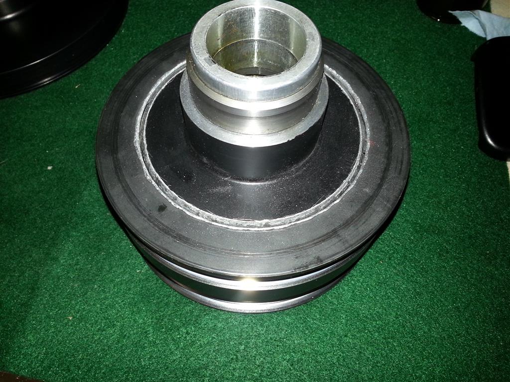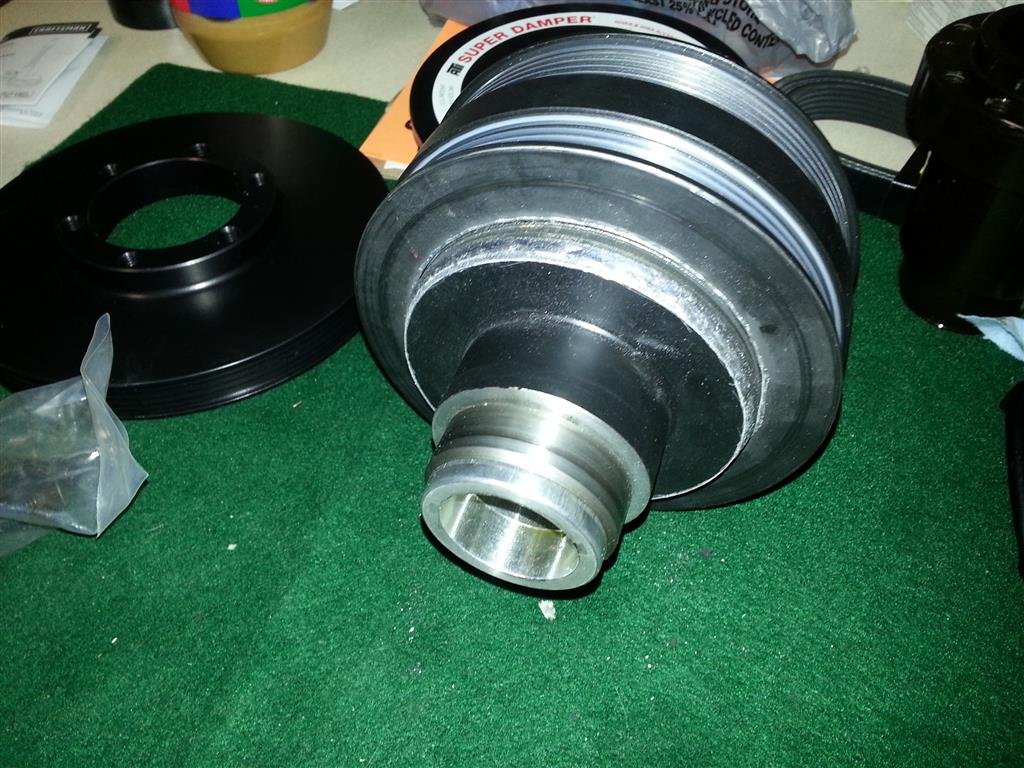 Well today, 7/21/2014 got the pulley from JDP -- ATI -- looks nice and once you put the hub on, you can remove the front pulley for rebuild (back pulley is for AC and is the standard belt/pulley).