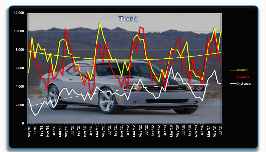 Great data! This would be interesting by region. I think in the Chicago area Camaros and Challengers are close and Mustangs in the lead....in Oklahoma where my daughter goes to school Camaros everywhere! I get into sensory overload....love it!